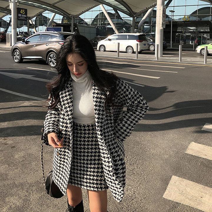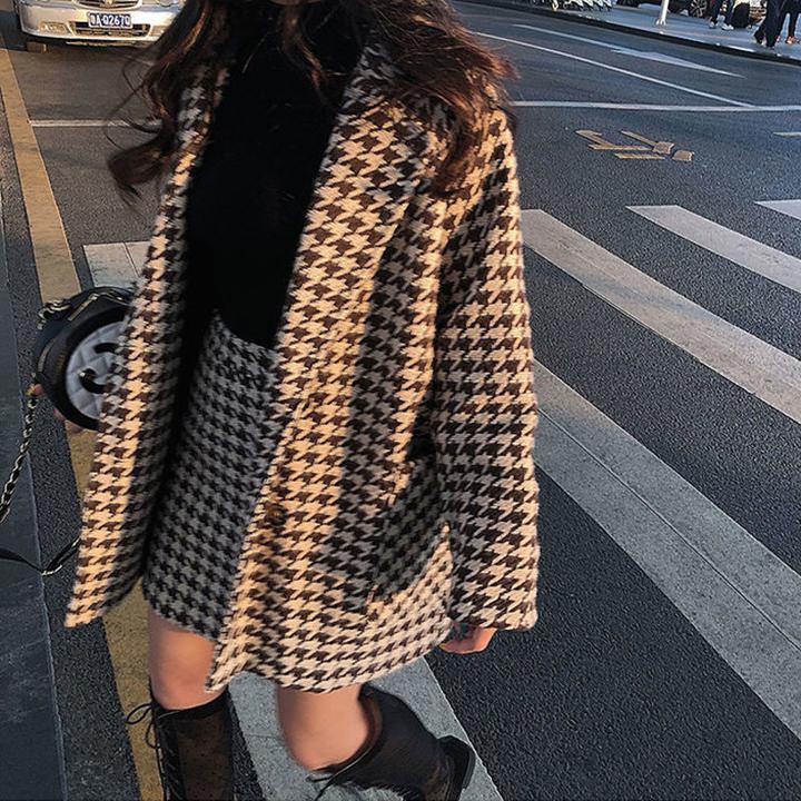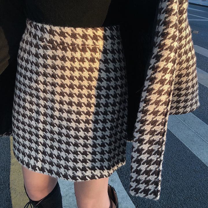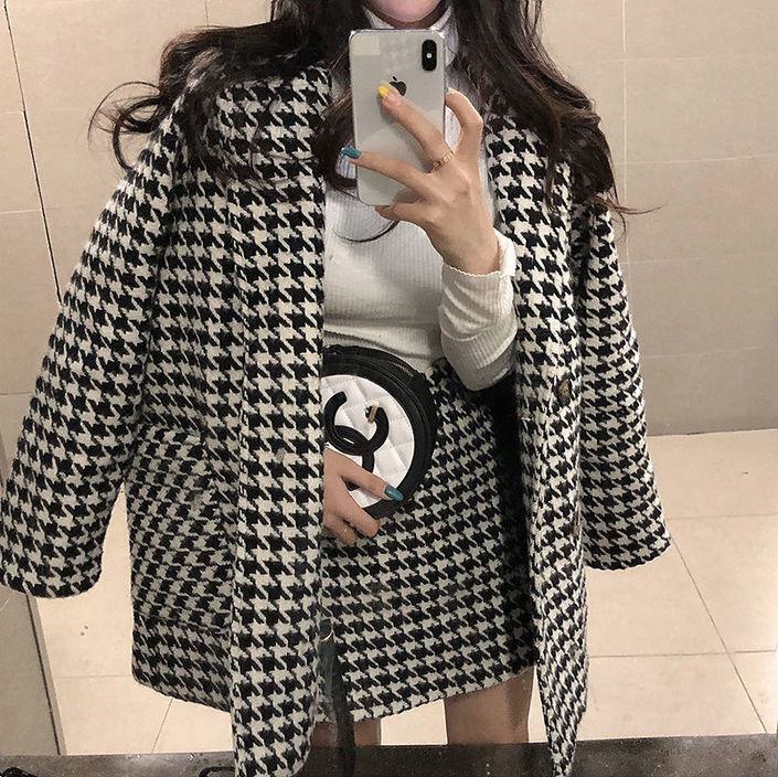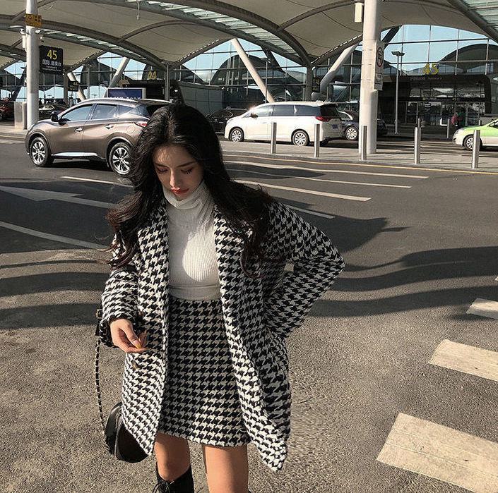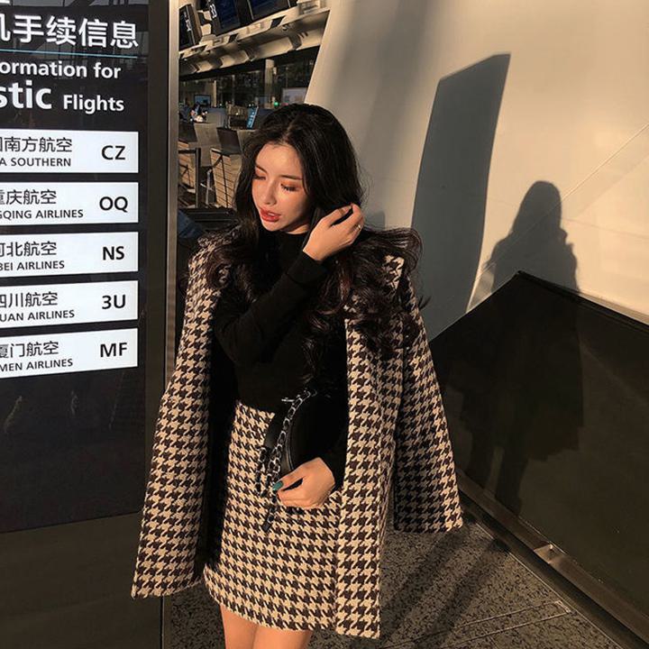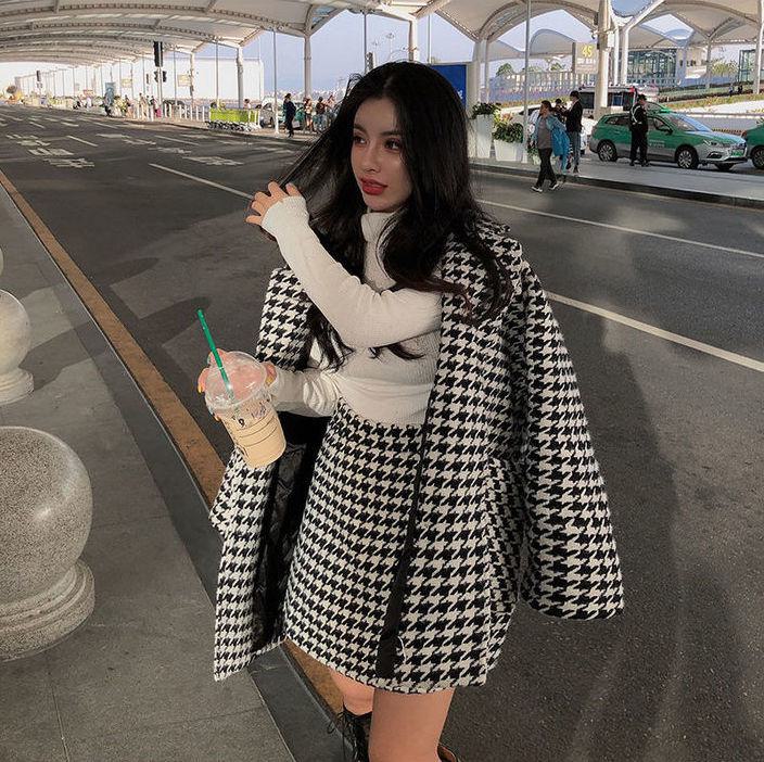 千鳥格子 ウールコート+ハイウエストス レディースファッション 新作 S M L XL XXL