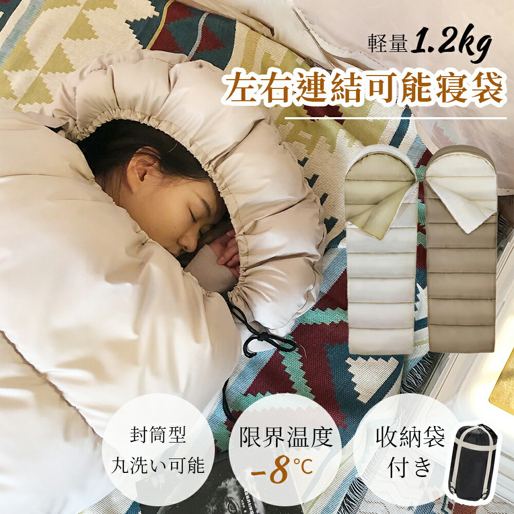 寝袋 シュラフ 洗える コンパクト 封 スポーツ アウトドア 新登場! アイボリー ブラウン