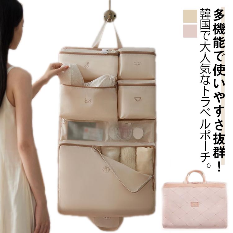 トラベルポーチ 吊り下げ 旅行 ポーチ 旅行用品 トラベルポーチ パッキングオーガナイザー 人気 ピンク ベージュ