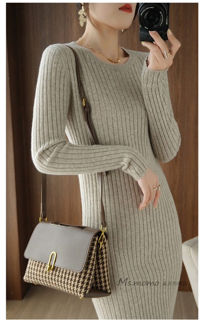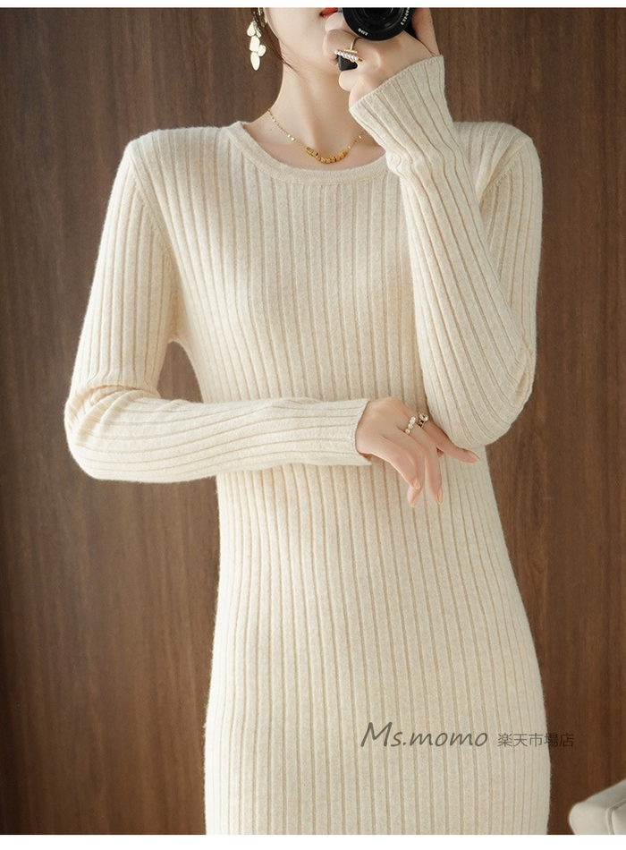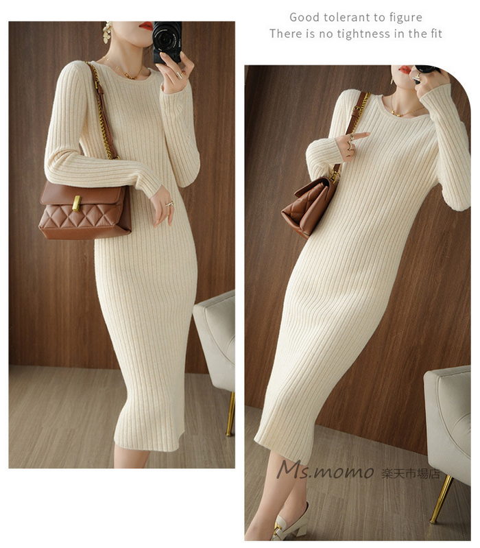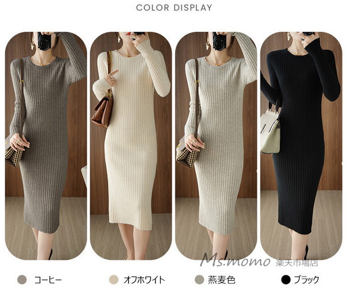 ニットワンピース 40代 オシャレ ロ レディースファッション 新登場! コーヒー オフホワイト 燕麦色 ブラック S M L XL 2XL