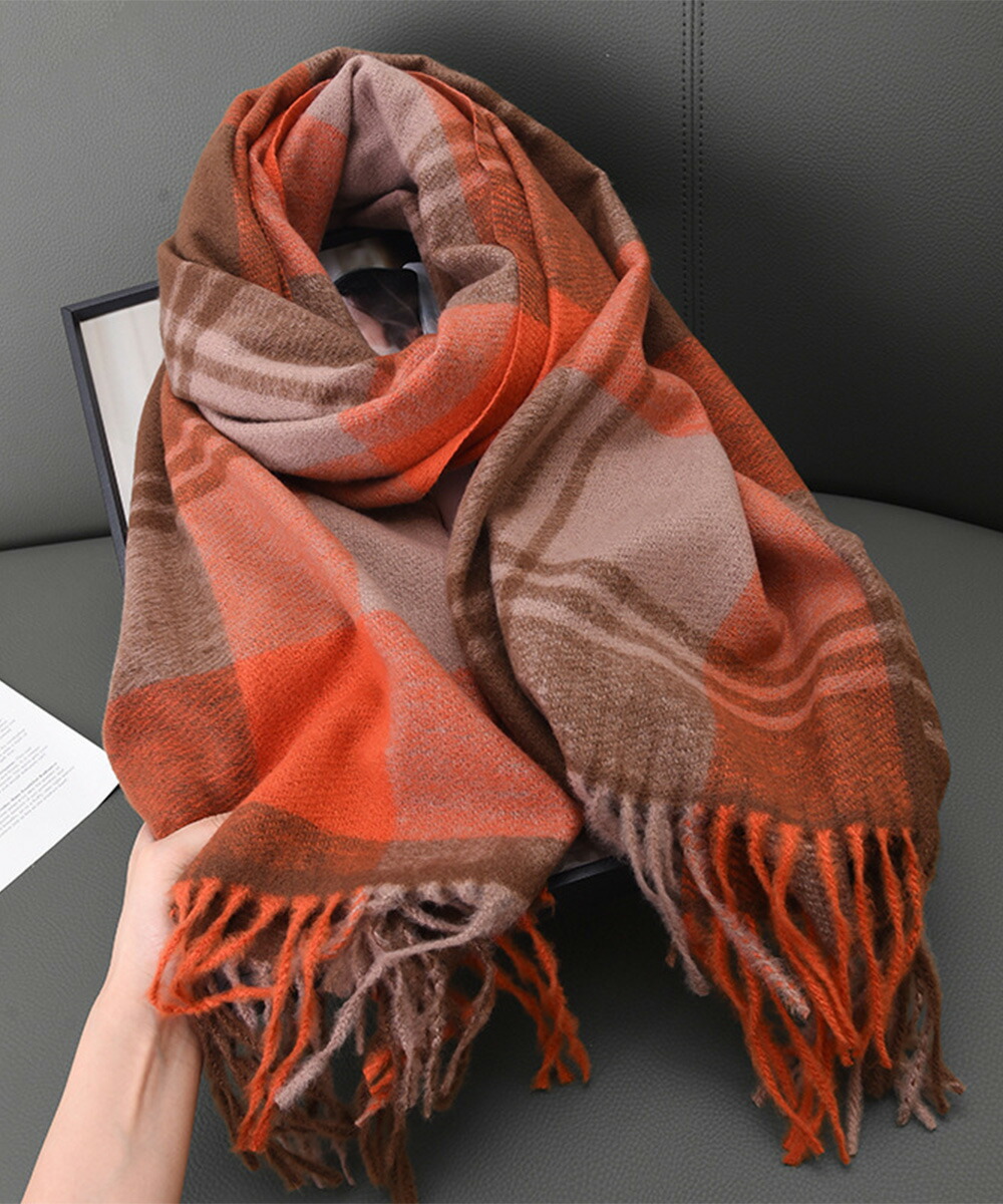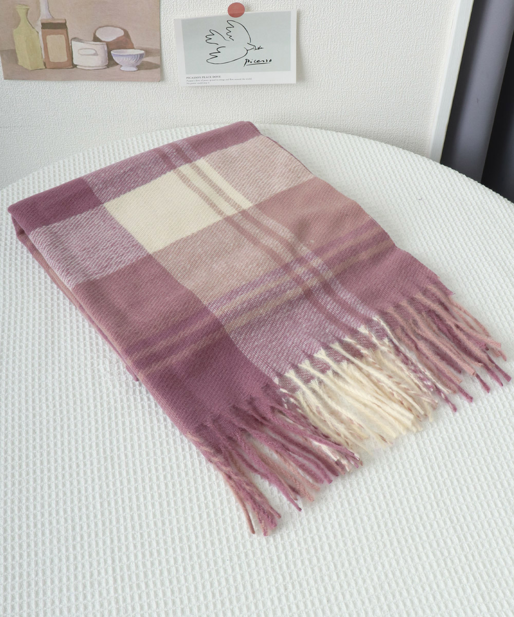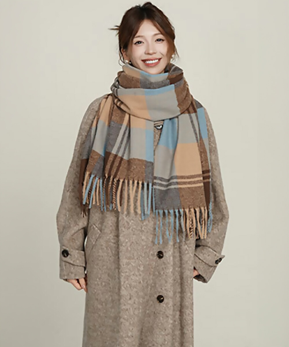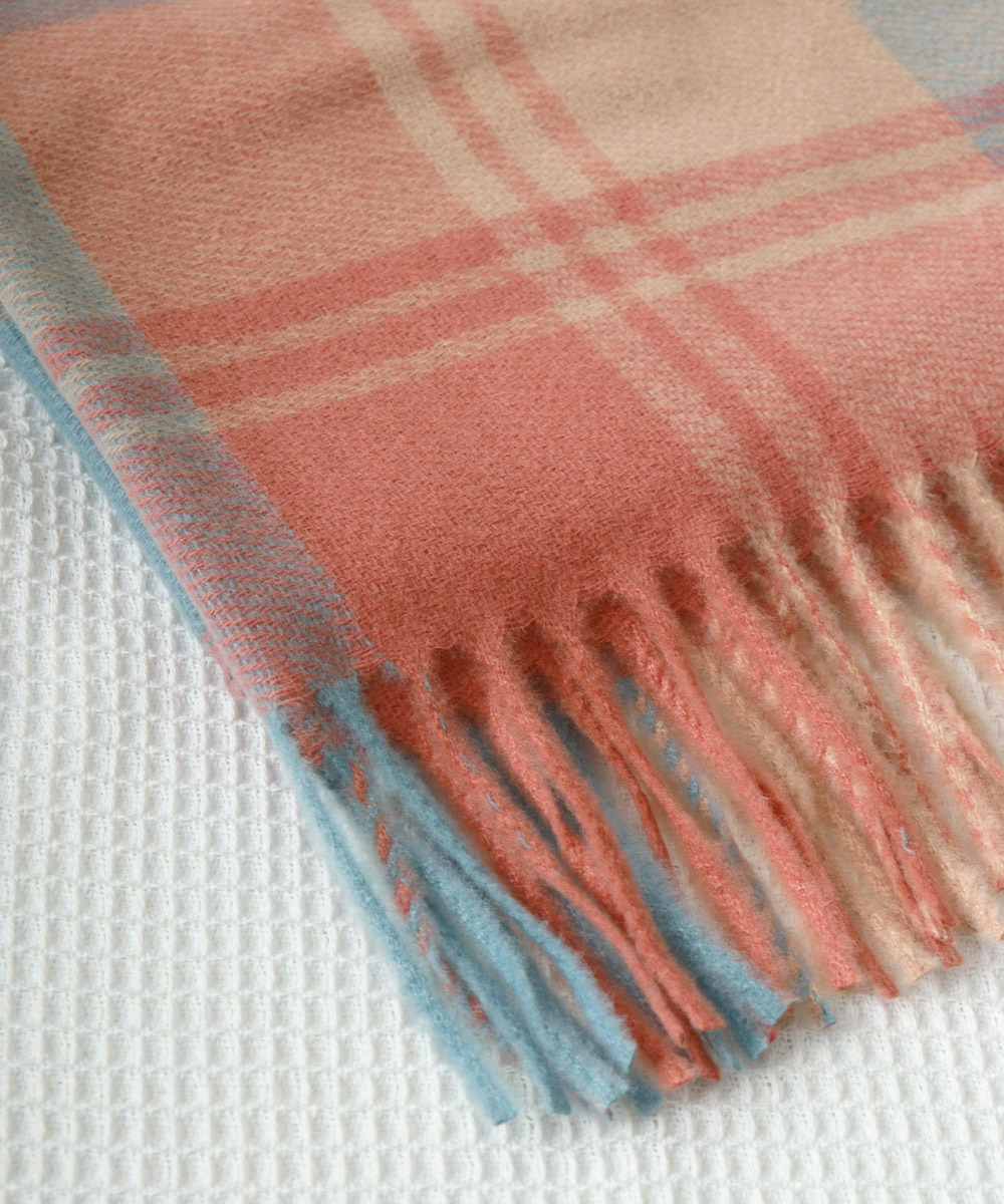 チェック柄マフラー 大判 ストール ボ バッグ 小物 ブランド雑貨 通販 オレンジ サーモンピンク ブラウン ブラック ライトブルー ラベンダー