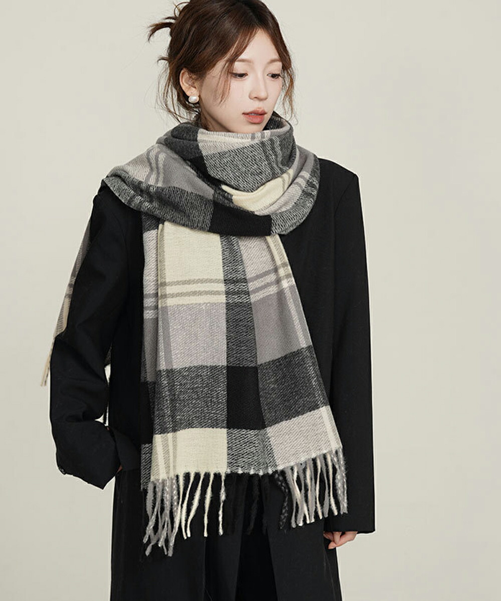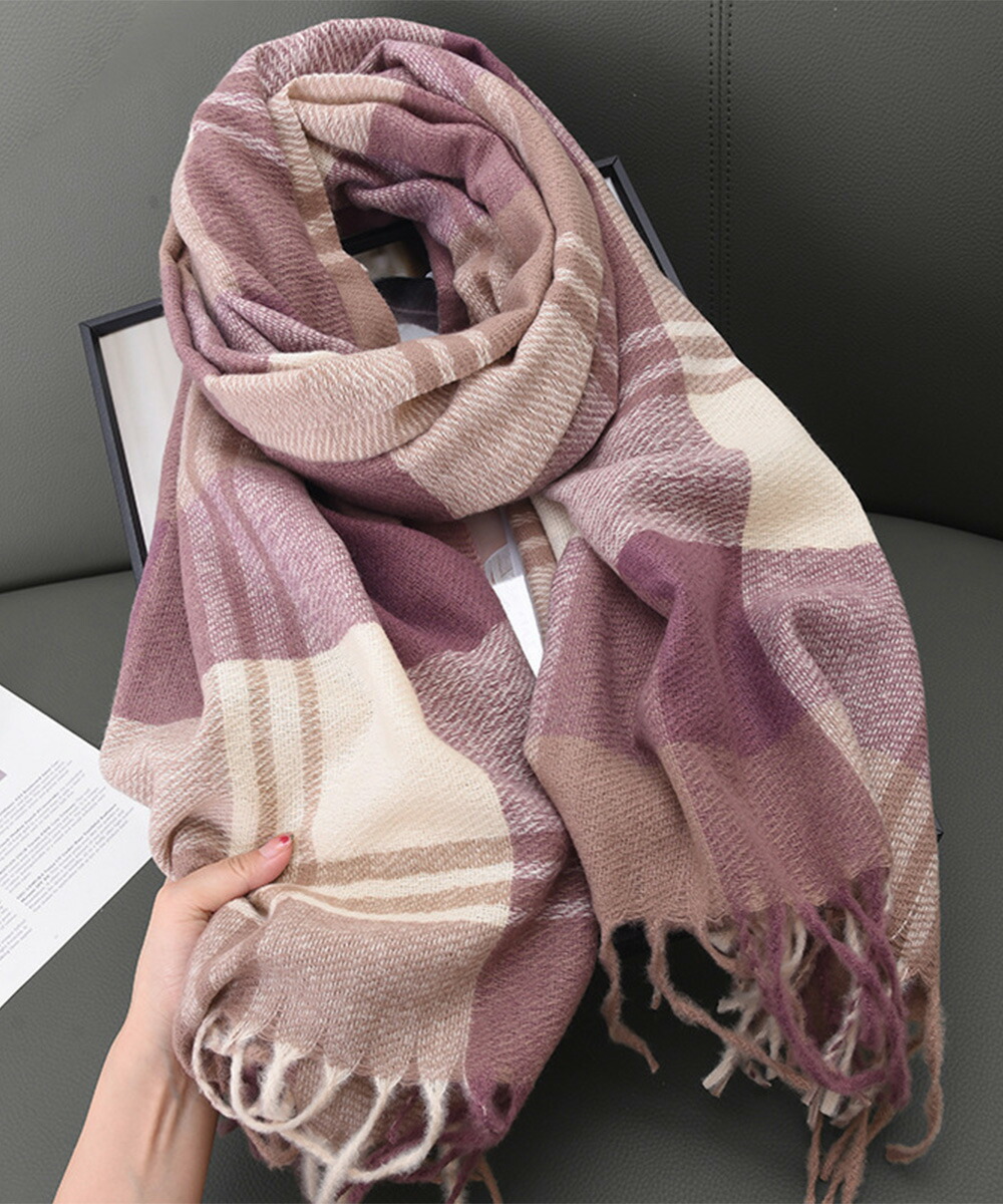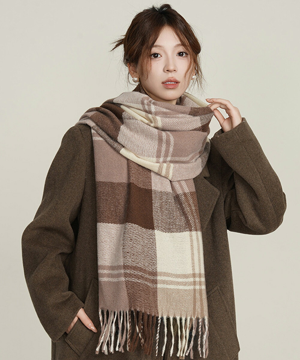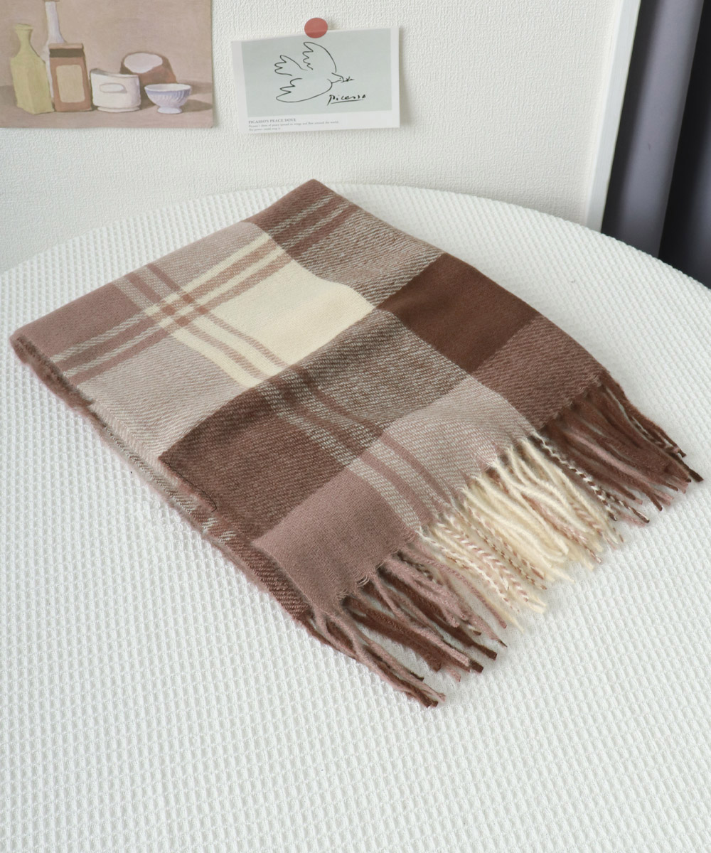 チェック柄マフラー 大判 ストール ボ バッグ 小物 ブランド雑貨 通販 オレンジ サーモンピンク ブラウン ブラック ライトブルー ラベンダー