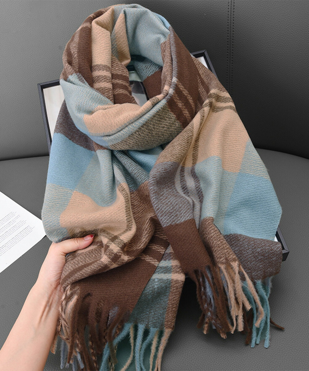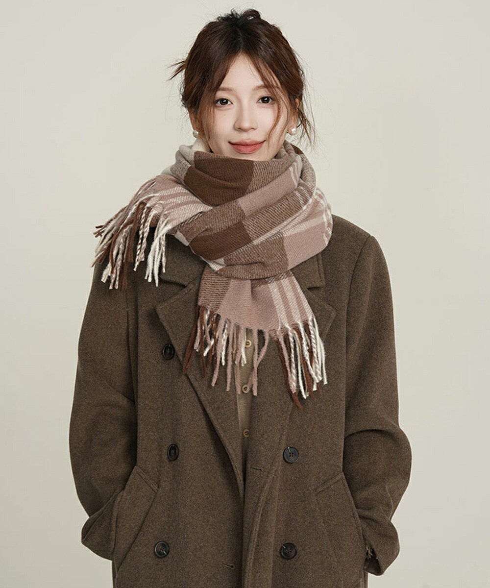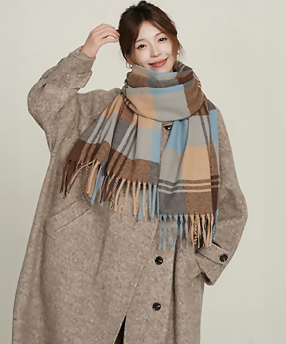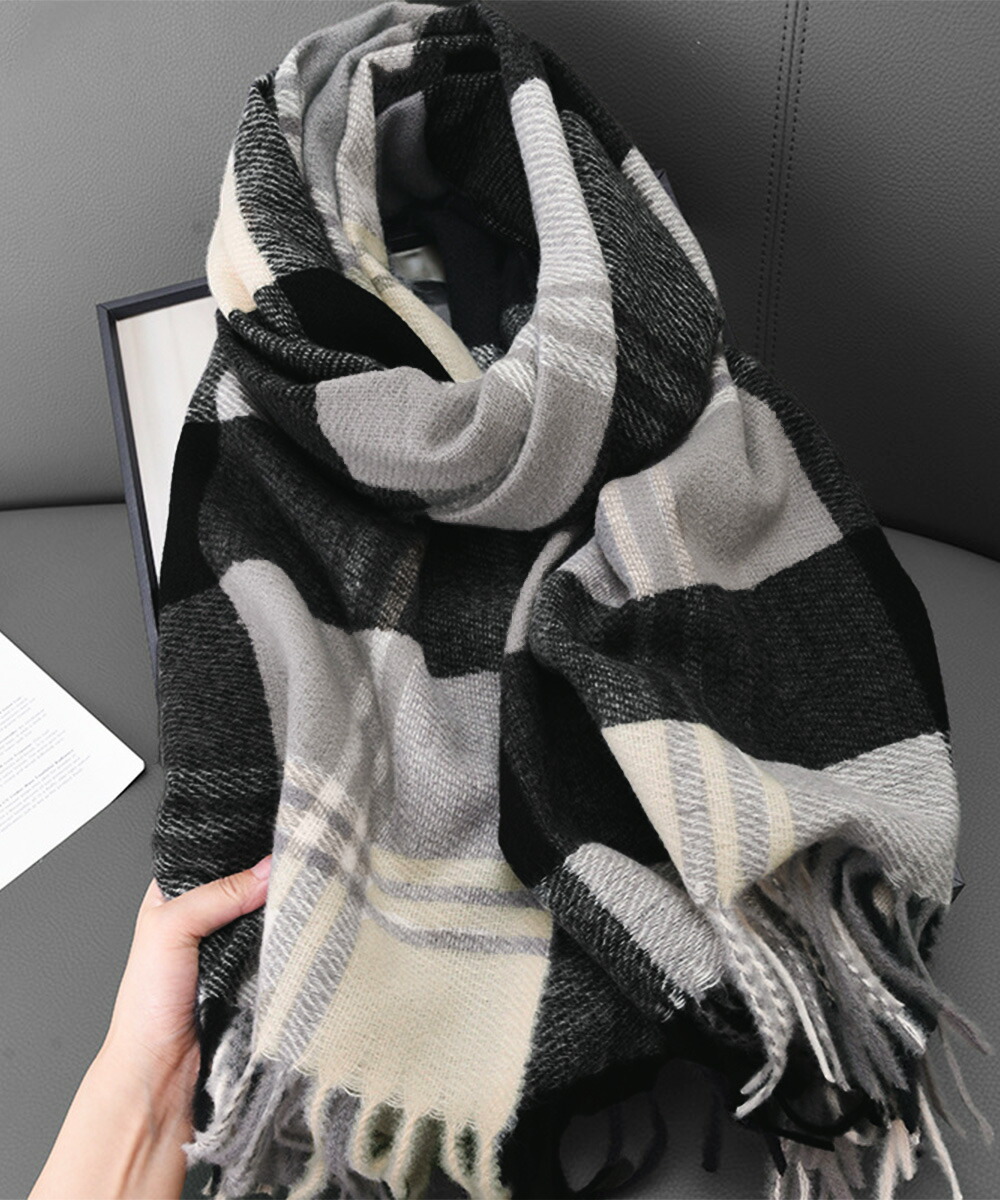 チェック柄マフラー 大判 ストール ボ バッグ 小物 ブランド雑貨 通販 オレンジ サーモンピンク ブラウン ブラック ライトブルー ラベンダー