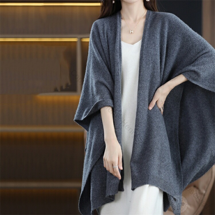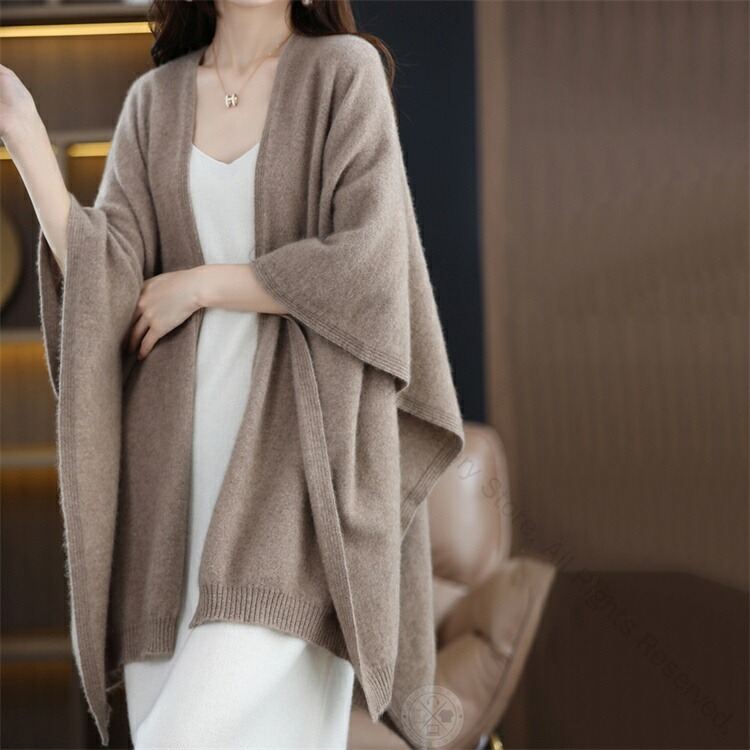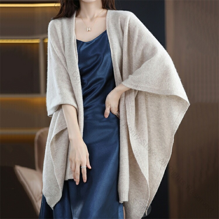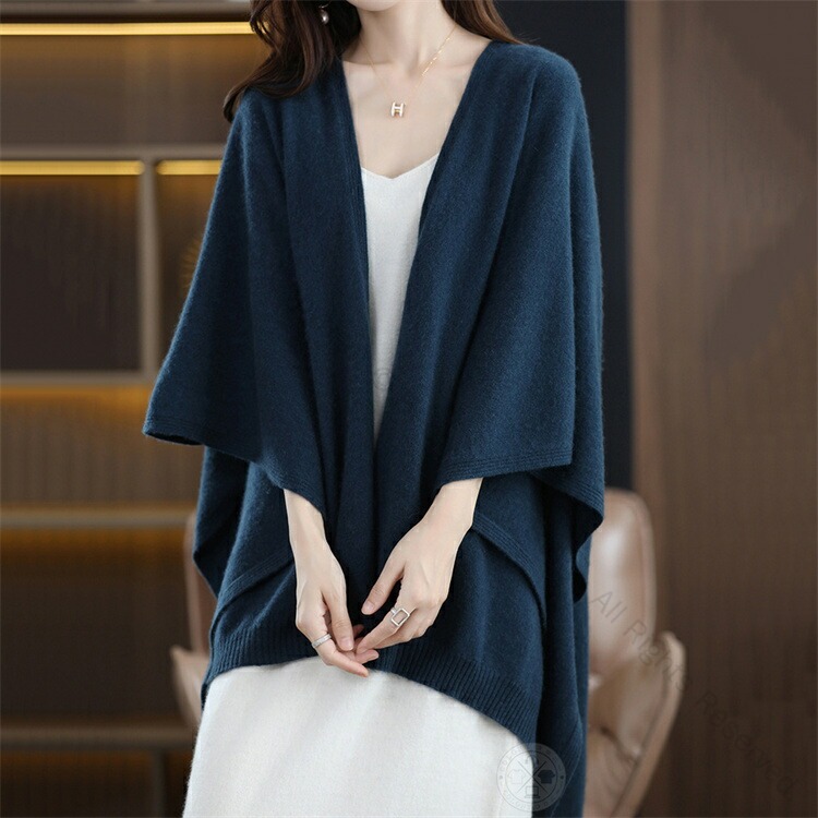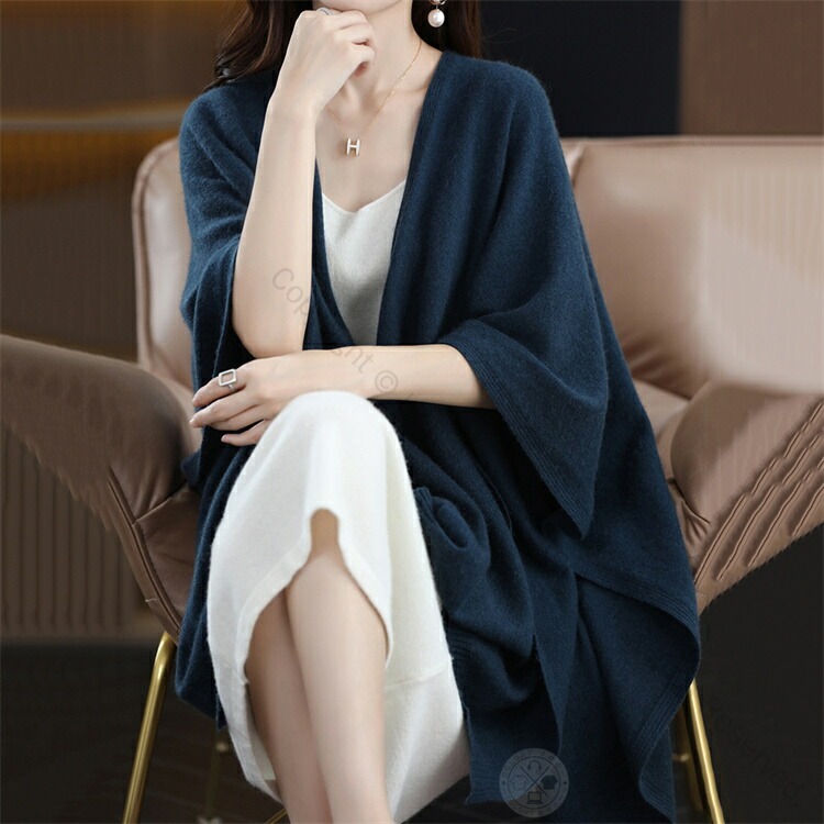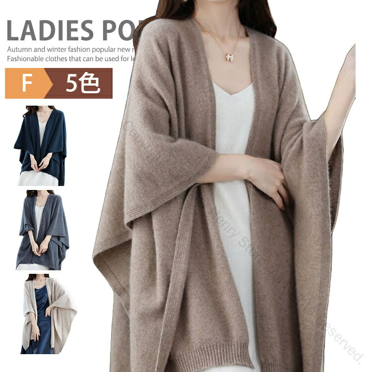 ウールケープコート レディース ニット レディースファッション 新作 黒 ベージュ キャメル ダークグレー ネイビー