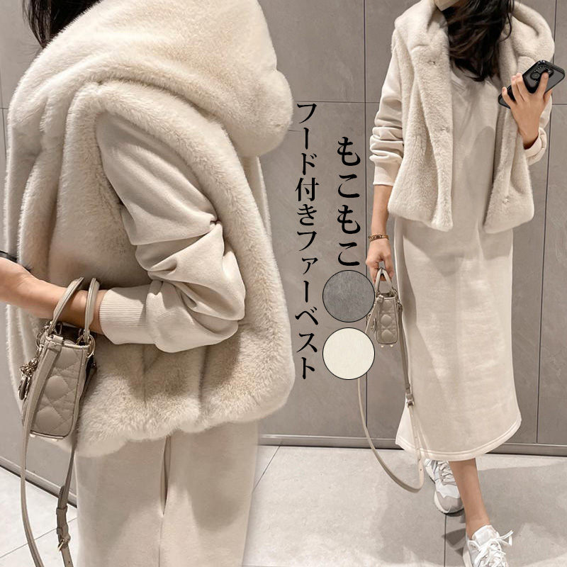 ベスト ジャケット ジレ フード付き レディースファッション 早い者勝ち ホワイト グレー