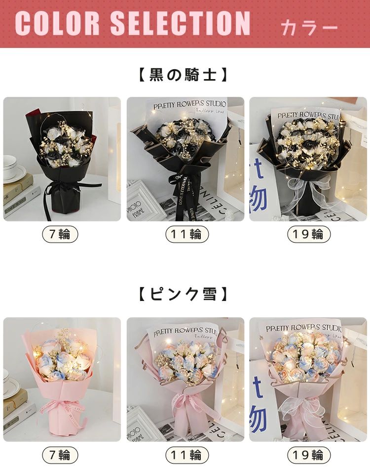 イベン 可愛い バラ 卒業 ソープフラ 【黒の騎士】 【ピンク雪】 【イモのアイス】 【恋】 【カプチーノ】 【少女の夢】 【氷雪の心】 【レッド】 【ピンク】 7輪 11輪 19輪