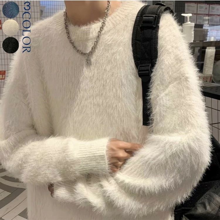 メンズ ニット クルーネック セーター トップス ニット セーター 豊富な品揃え グレー ブラック ホワイト M L XL 2XL