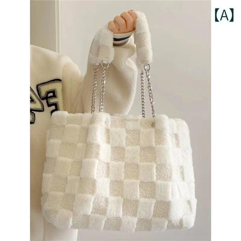 ふわふわ 冬 鞄 秋 チェーン かわいい カバン 白 レディース ハンドバッグ 学生 トートバッグ かばん 大容量 ショルダーバッグ