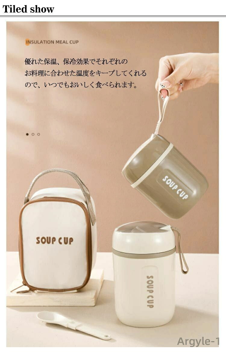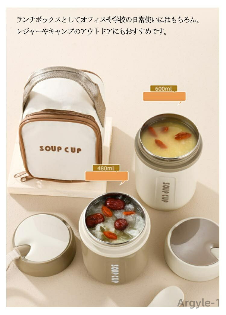 通勤 保冷 お弁当 学生 480ml キッチン用品 食器 調理器具 早い者勝ち ベージュ【収納バックつき】 カーキ【収納バックつき】 480ml 600ml 800ml