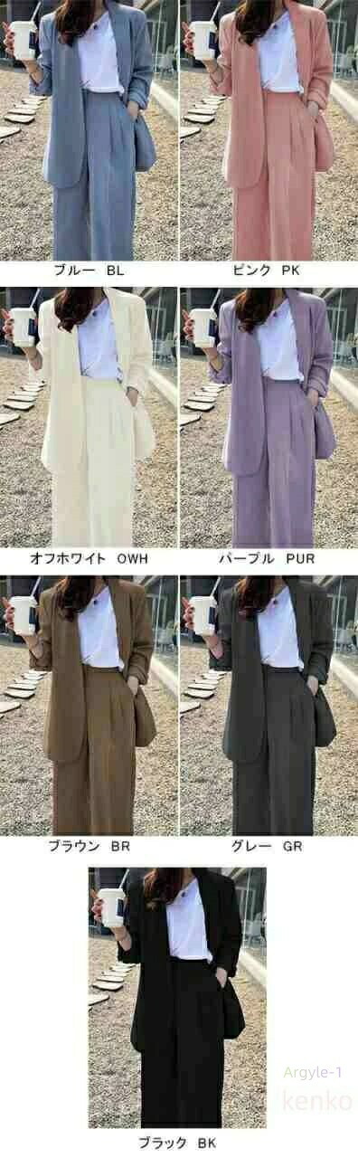 パンツスーツ セットアップ ビジネスス レディースファッション 通販 オフホワイト ブラック ピンク ブラウン ブルー グレー パープル Mサイズ Lサイズ XLサイズ 2XLサイズ 3XLサイズ