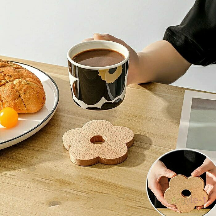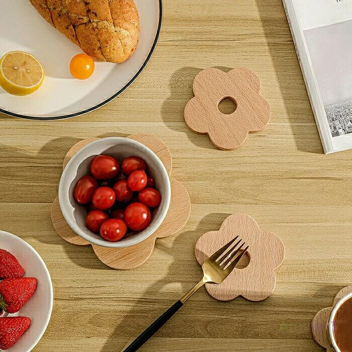 コースター 木製 花柄 天然木 ブナ 耐熱 木製コースター インテリア 記念品 お見舞い お祝い 贈答 雑貨 食器 敷物 茶托 おしゃれ プレゼント 中空デザイン おもてなし セットかわい 天然素材