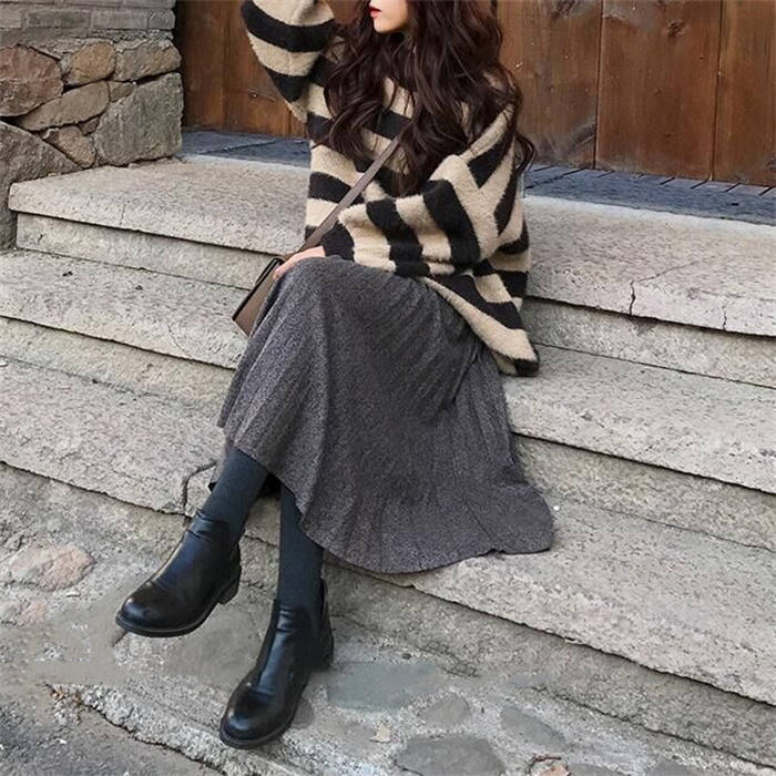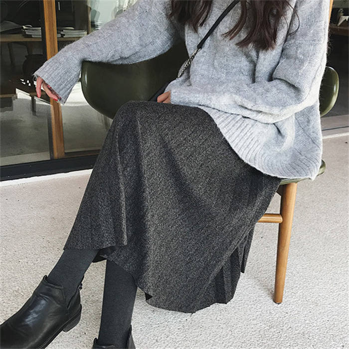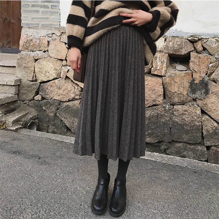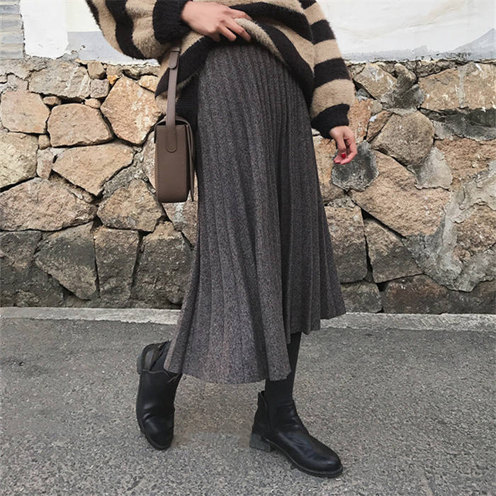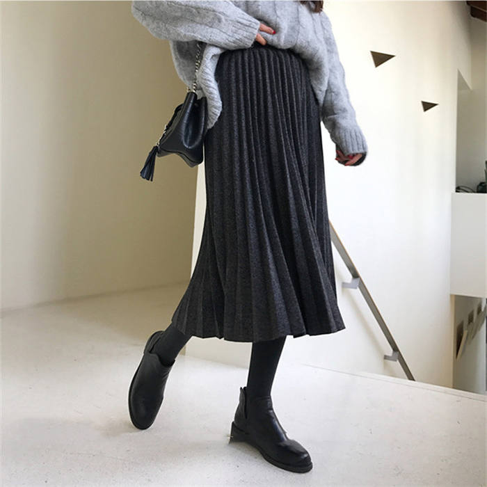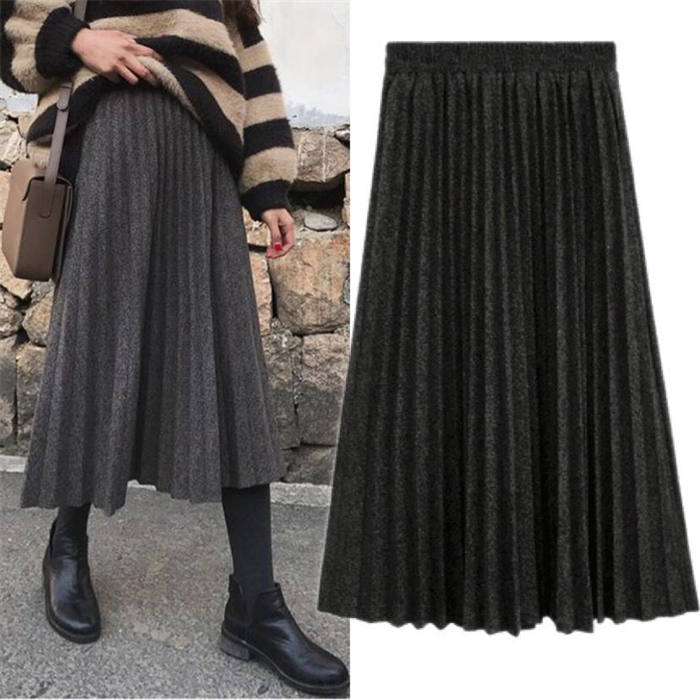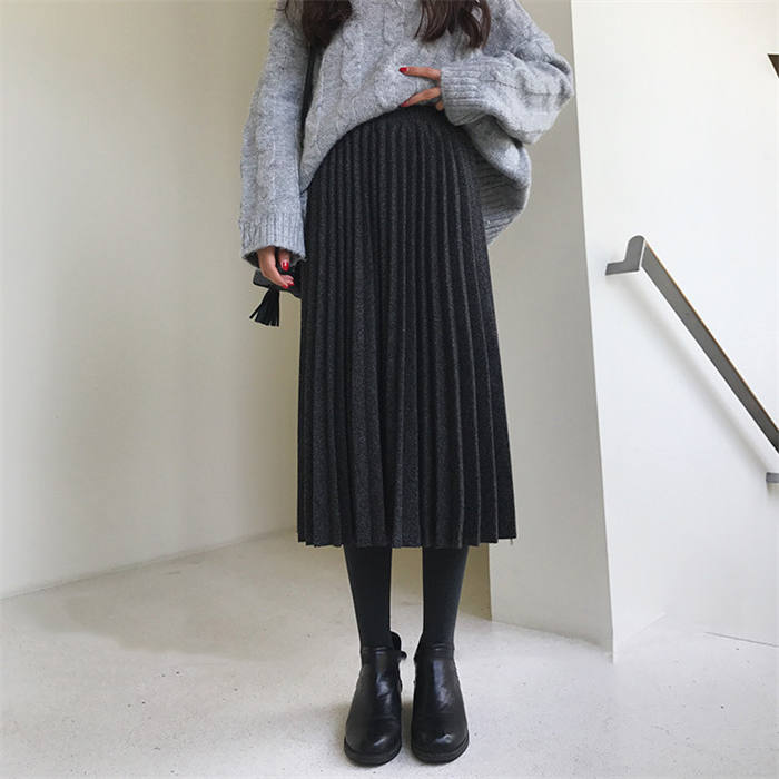 厚手 ウ スカート 無地 プリーツスカ レディースファッション 通販 ブラック グレー M L XL 2XL 3XL