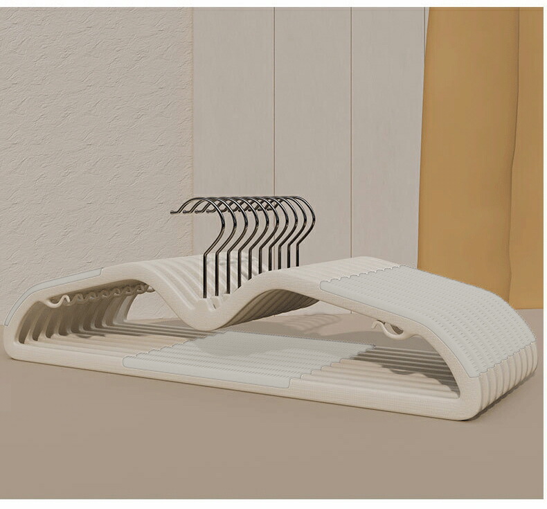 このハンガーは、細部まで行き届いた設計が魅力です。表面に施された特殊な加工により、高い滑り止め効果を発揮します。なめらかな素材の洋服やシルクのようになめらかな生地も、しっかりとキャッチしてくれるので、落下を防いでくれます。更に、ハンガーの肩の部分は人間工学に基づいて設計されており、洋服にハンガーの跡が付きにくいのも特徴です。肩部分が洋服に与える負担を最小限に抑えることで、大切な洋服を型崩れから守ります。