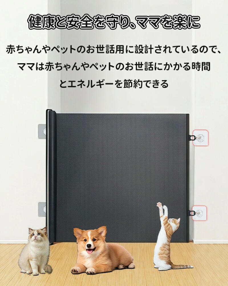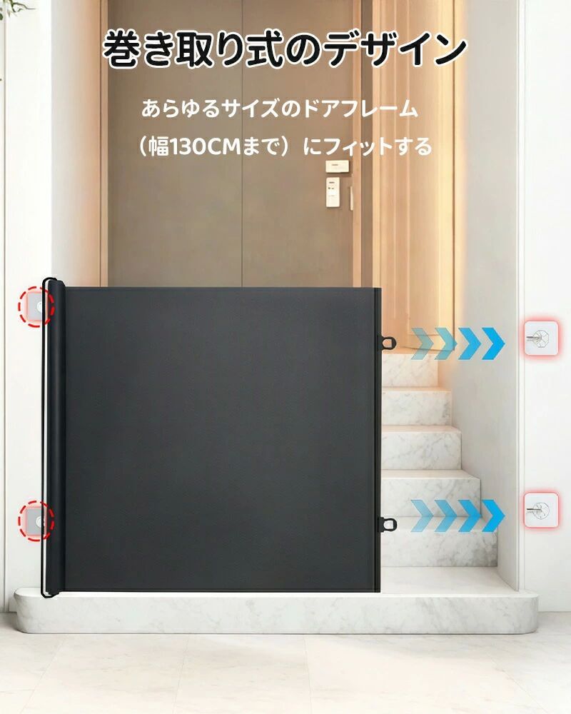 子ども 工事不要 取付簡単 巻き取り式 階段上 犬対策 ペットゲート 幅130cm 高さ78cm ロール式 伸縮 ベビーフェンス
