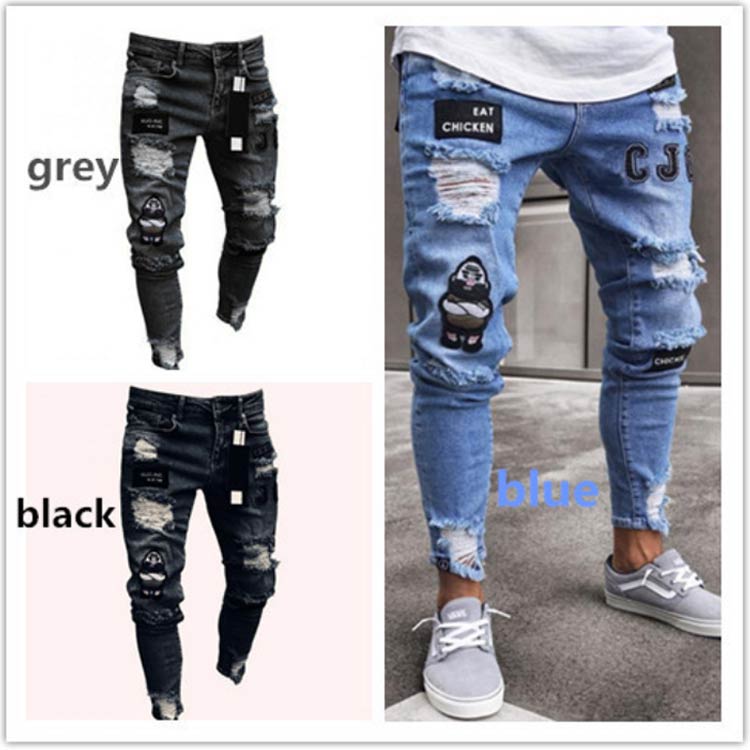 ボト ダメージジーンズ 細身 ストレッ ズボン パンツ 新登場! 806ブルー 806グレー 806ブラック 805ブルー 805グレー 805ブラック S M L XL 2XL 3XL 4XL