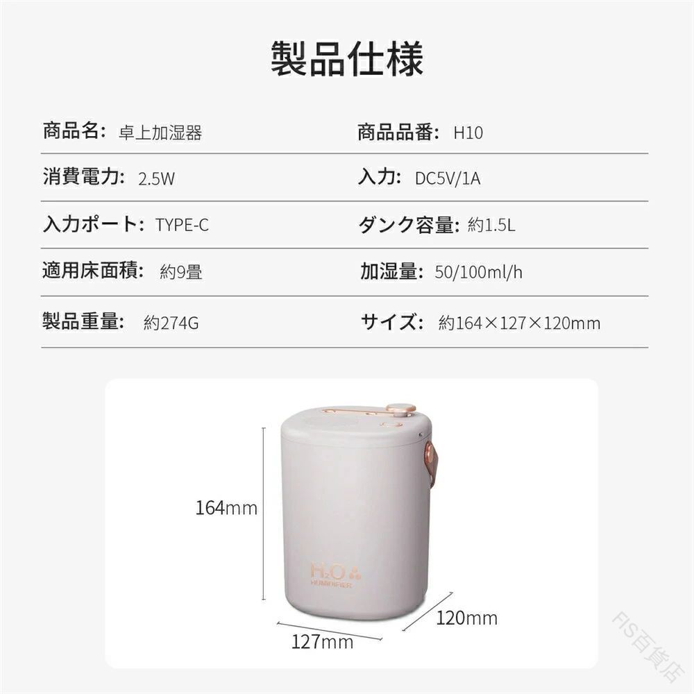 手入れ不要 加湿器 卓上 コンパクト ホワイト グレー USB電源式 充電式