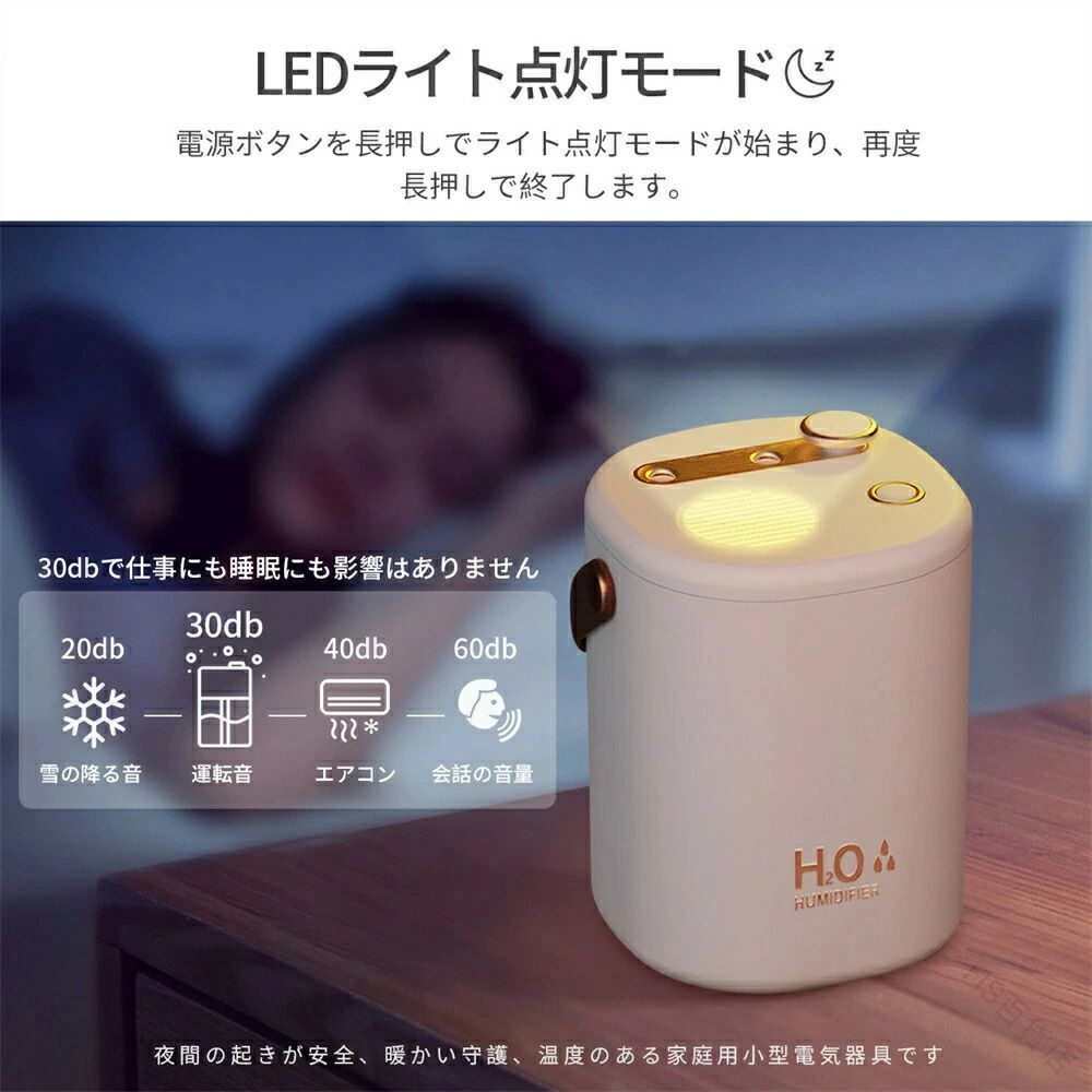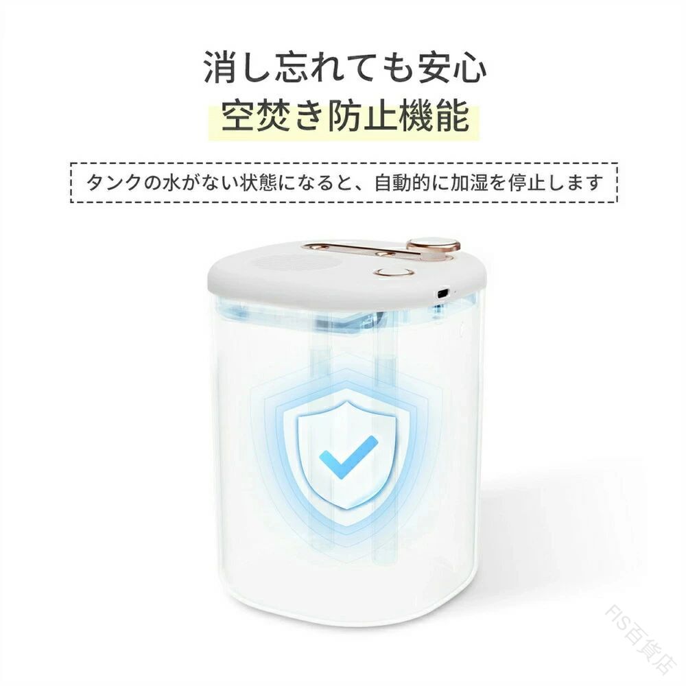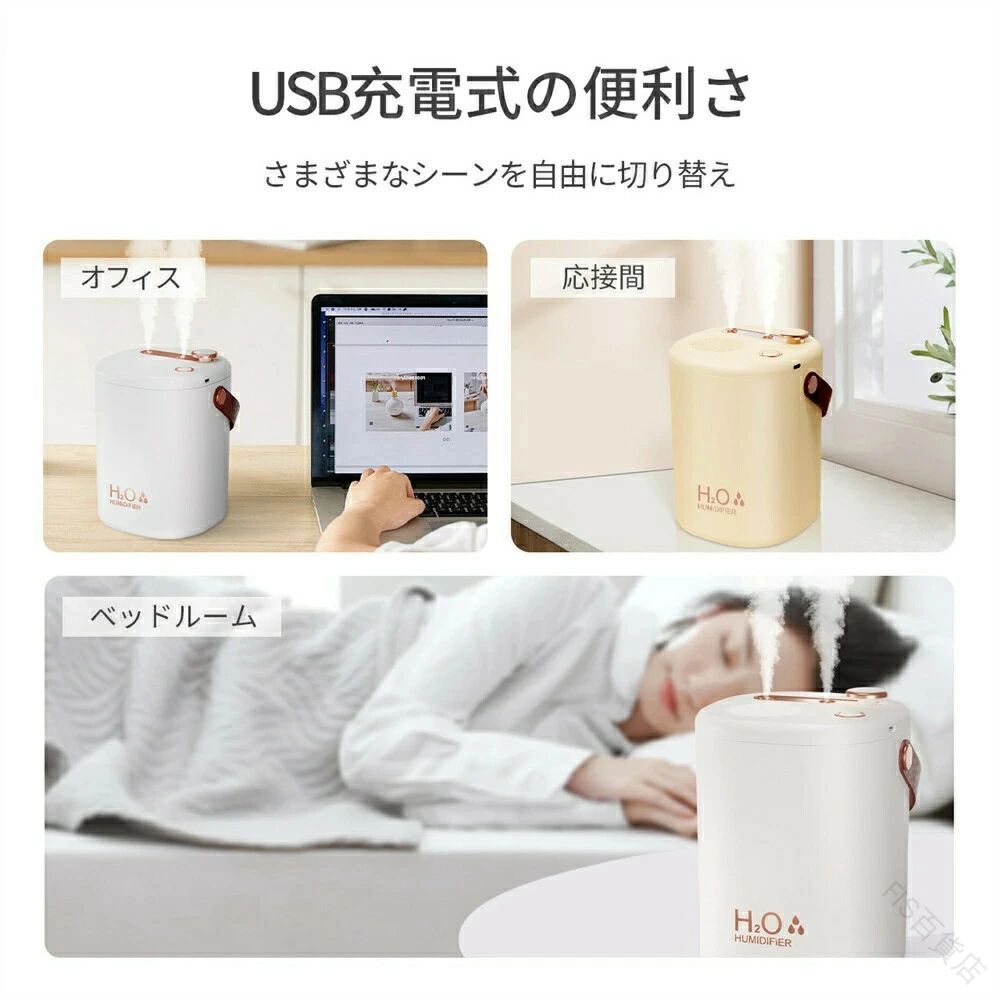 手入れ不要 加湿器 卓上 コンパクト おしゃれ 大容量2L USB充電式 コードレス 上部給水式 空焚き防止 次亜塩素酸水対応 省エネ ダブルノズル オフィス リビング 部屋 充電式 アロマ 除 車用