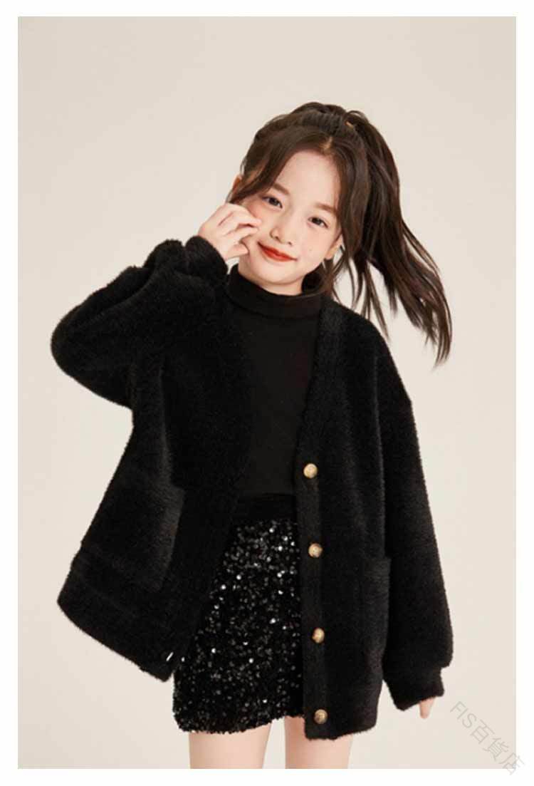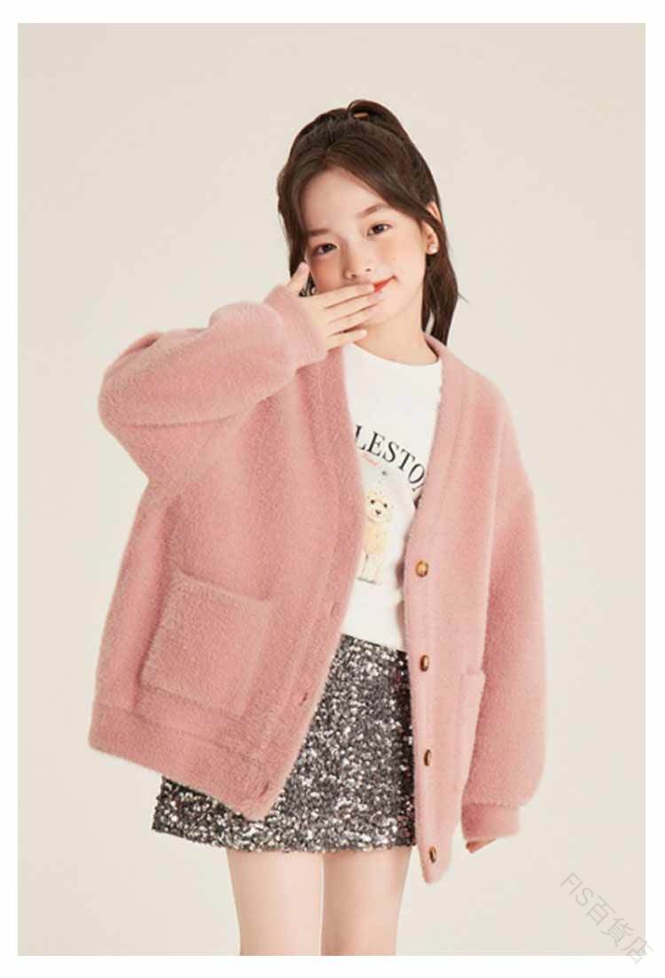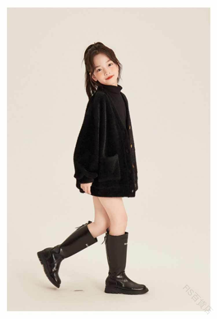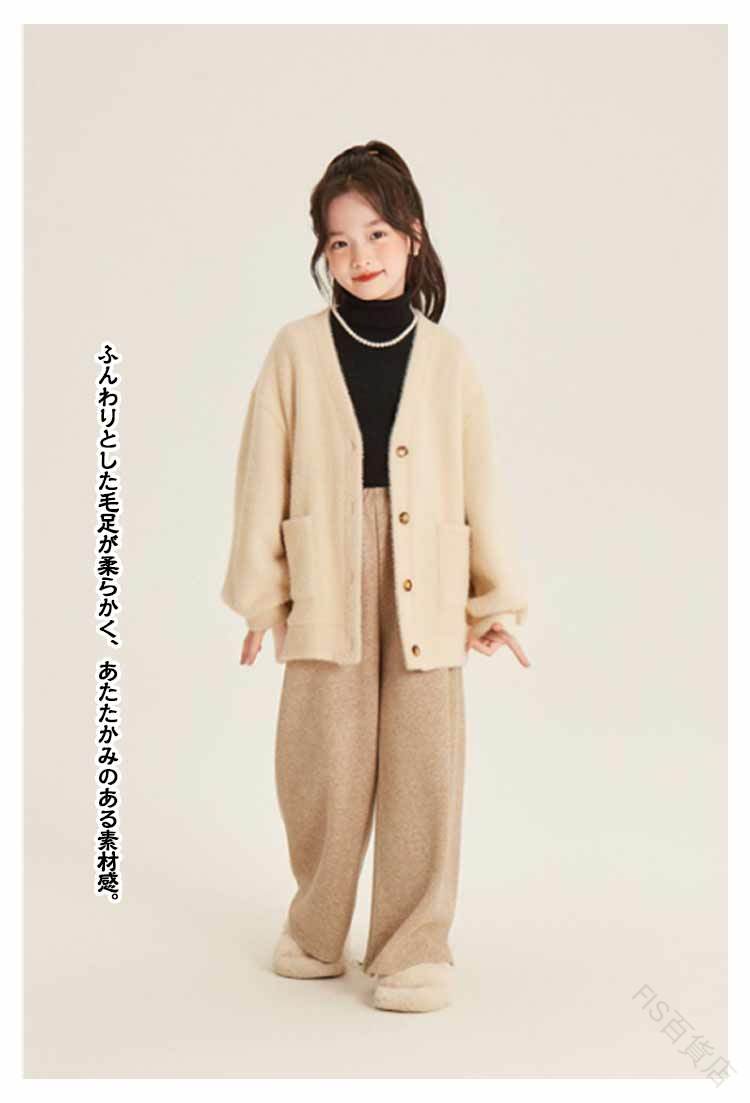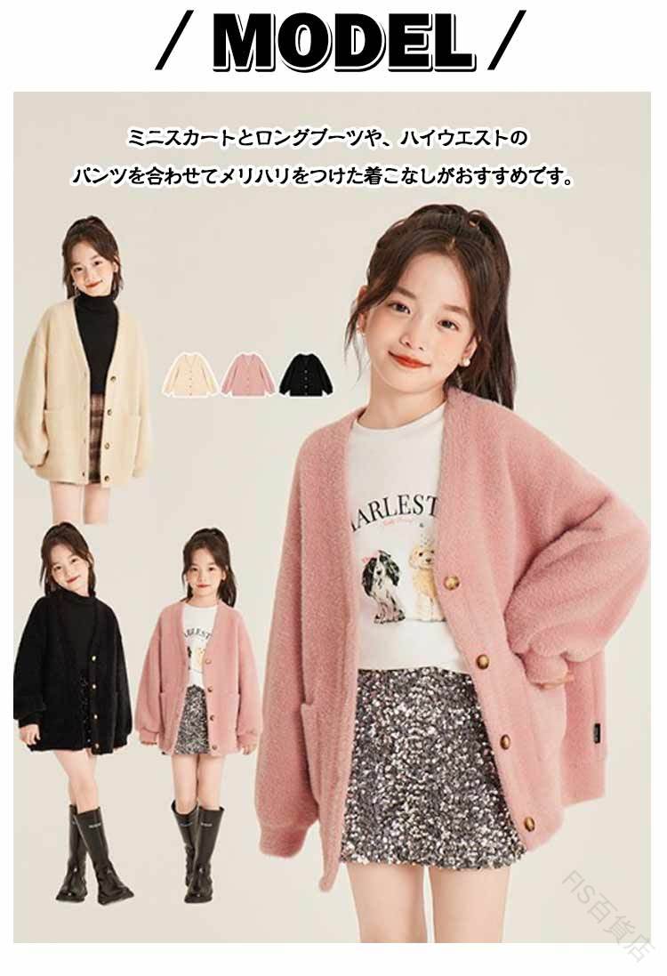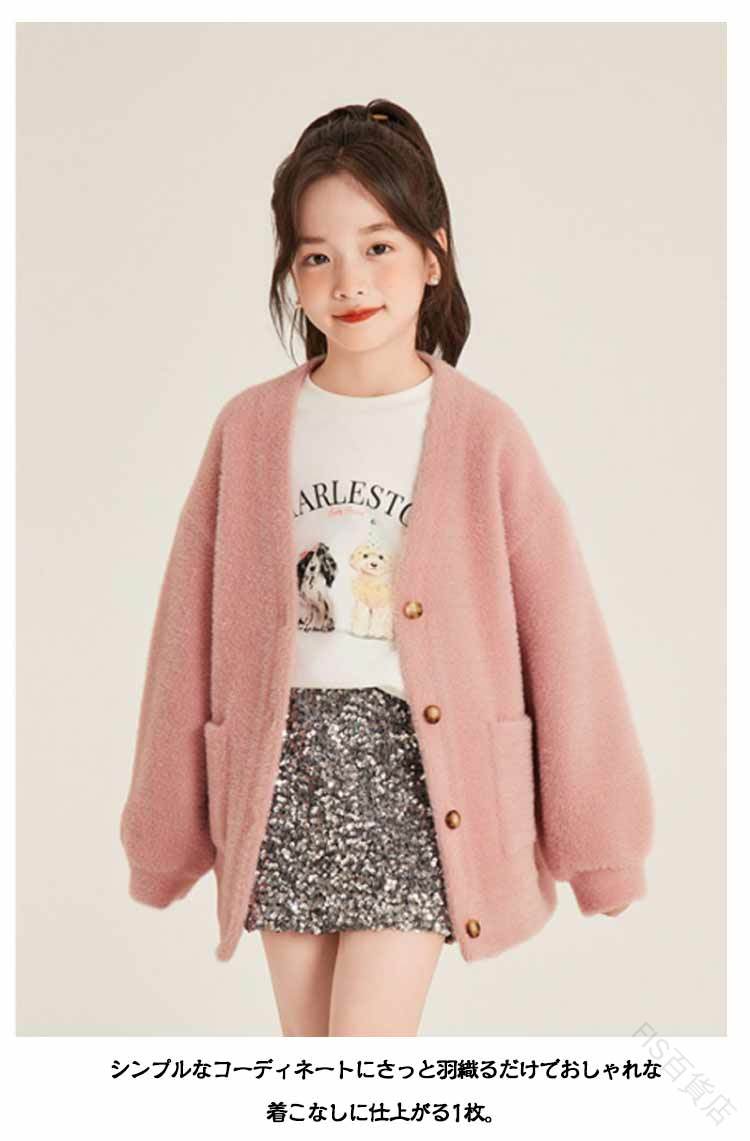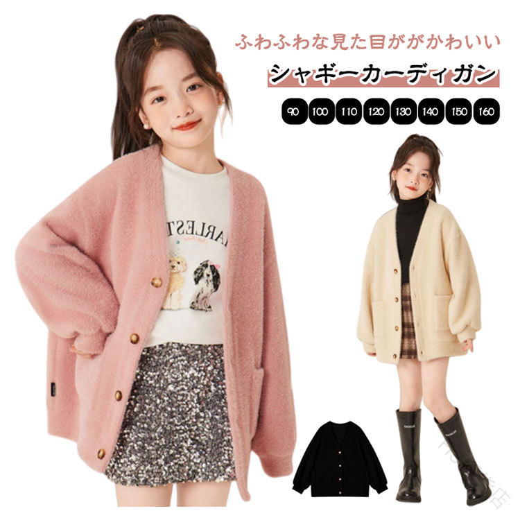 シャギーニットカーディガン キッズ 子 キッズ トップス カーディガン ボレロ 特集 ブラック ホワイト ピンク 90 100 110 120 130 140 150 160