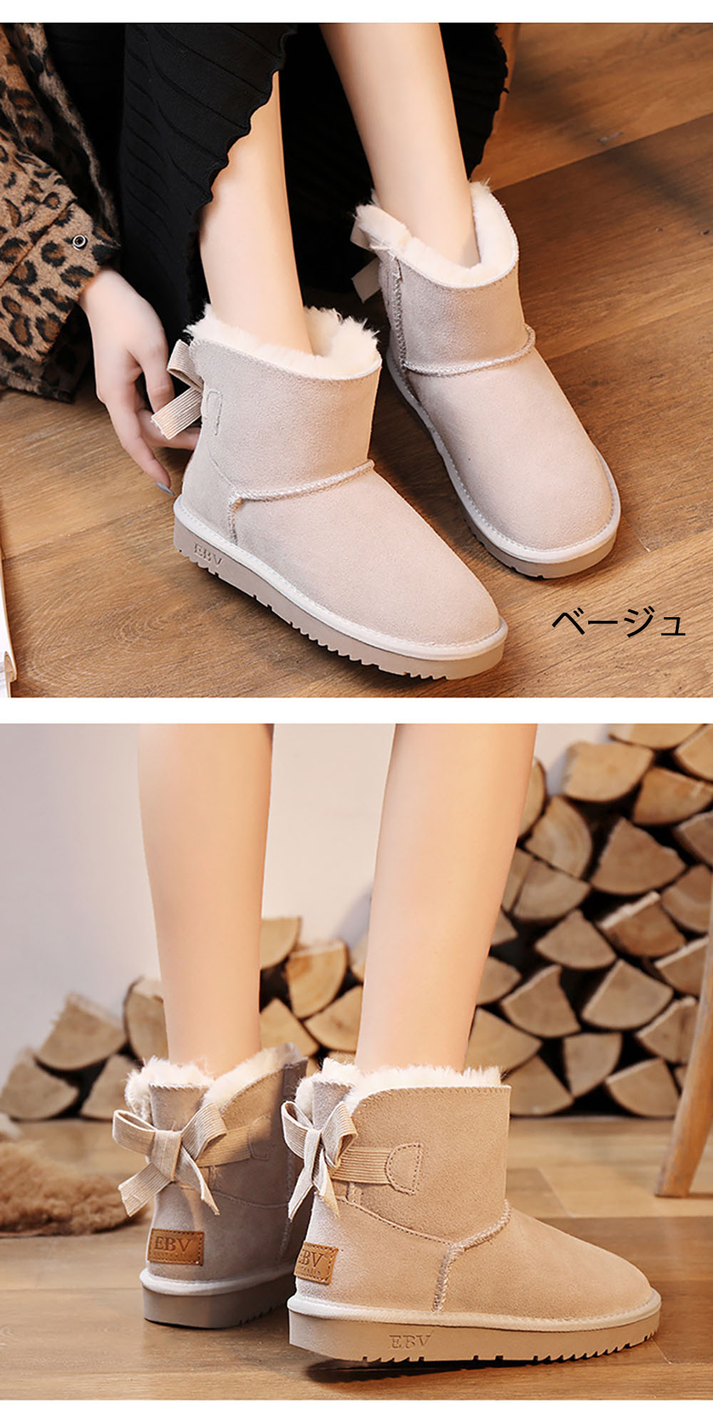 +500本革 ムートンブーツ レディース足首が細く見えるブーツ ショートブーツ 痛くない ブーティ 歩きやすいリボン付 疲れない靴