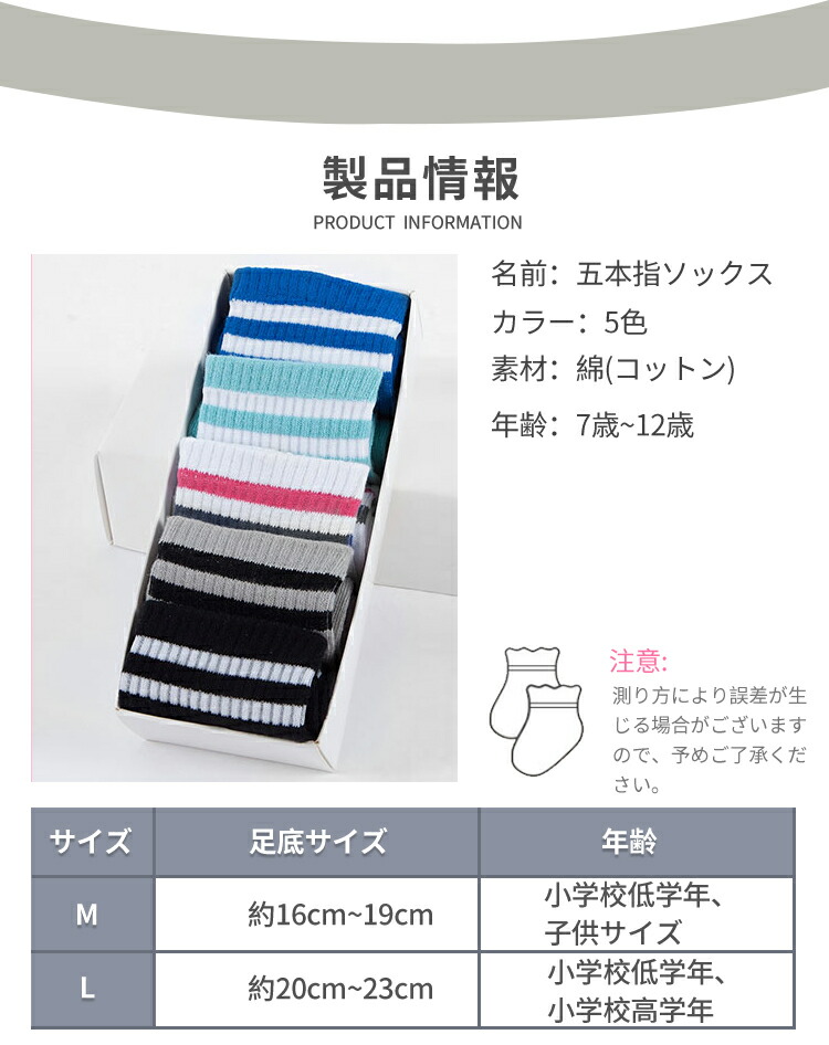 3足組子供 靴下 子供用五本指ソックス キッズ 靴下 タイツ 靴下 新登場! M(約16cm~19cm) L(約20cm~23cm) ブラック 3足組 ブルー 3足組 グリーン 3足組 グレー 3足組 ホワイト 3足組