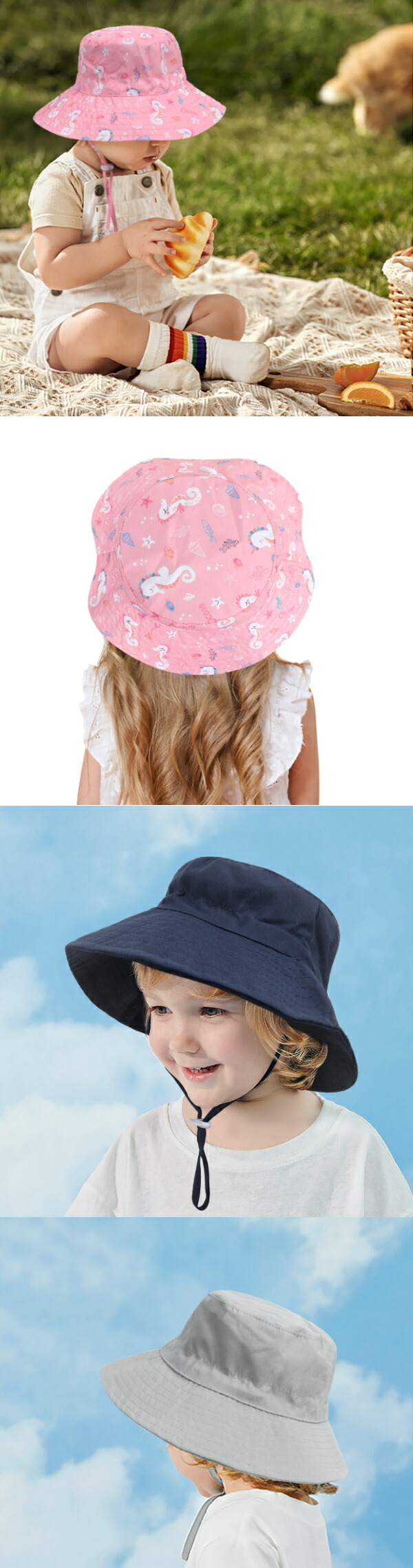 在庫品頭周り44-54cm 全20色 3サイズ日よけ キッズ帽子ベビー帽子 夏用ベビー赤ちゃん用ハットuvカット帽子紐付き ツバ広夏プール紫外線対策日よけ海子供女の子男の子折り畳み保育園 サンハット