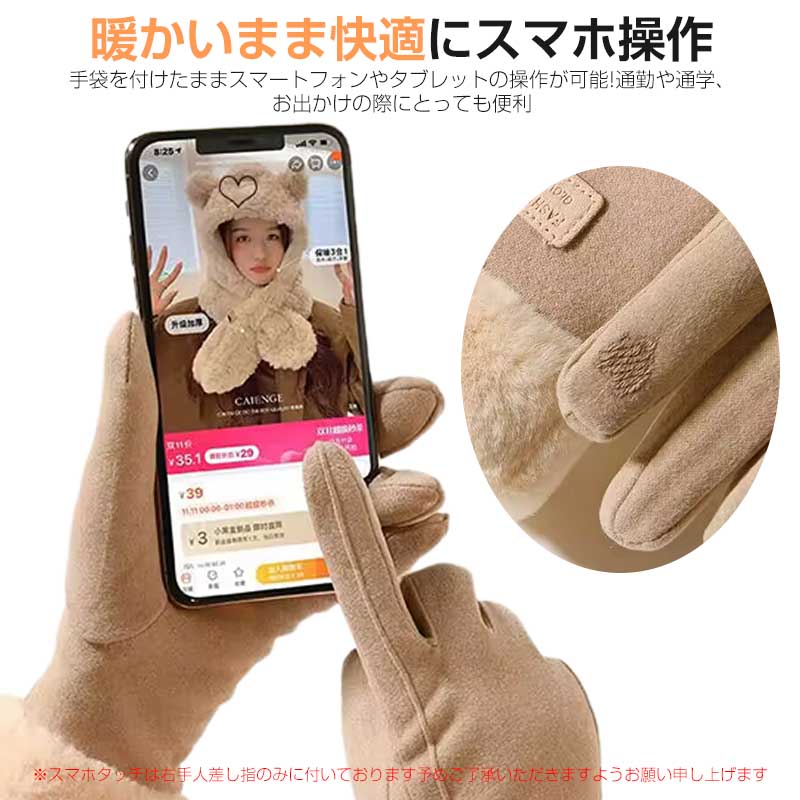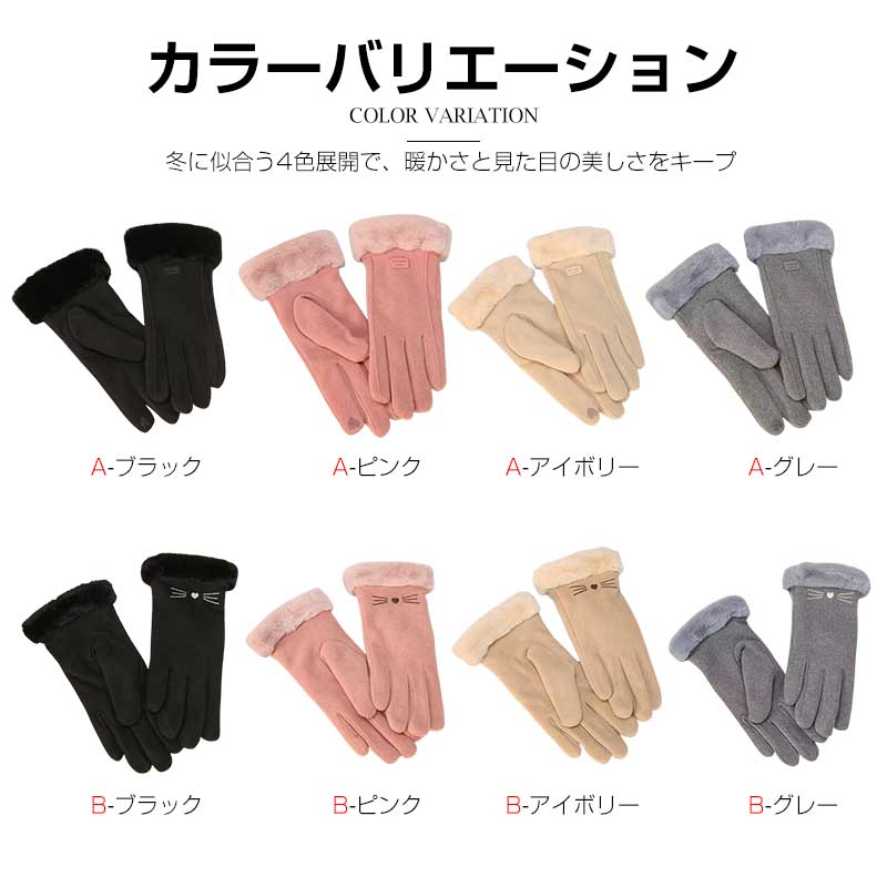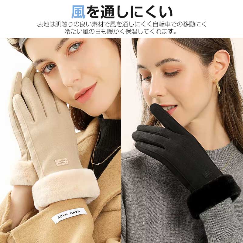 レディース 防寒手袋 自転車用 かわい 自転車 サイクリング グローブ 豊富な品揃え ブラック グレー アイボリー ピンク A B