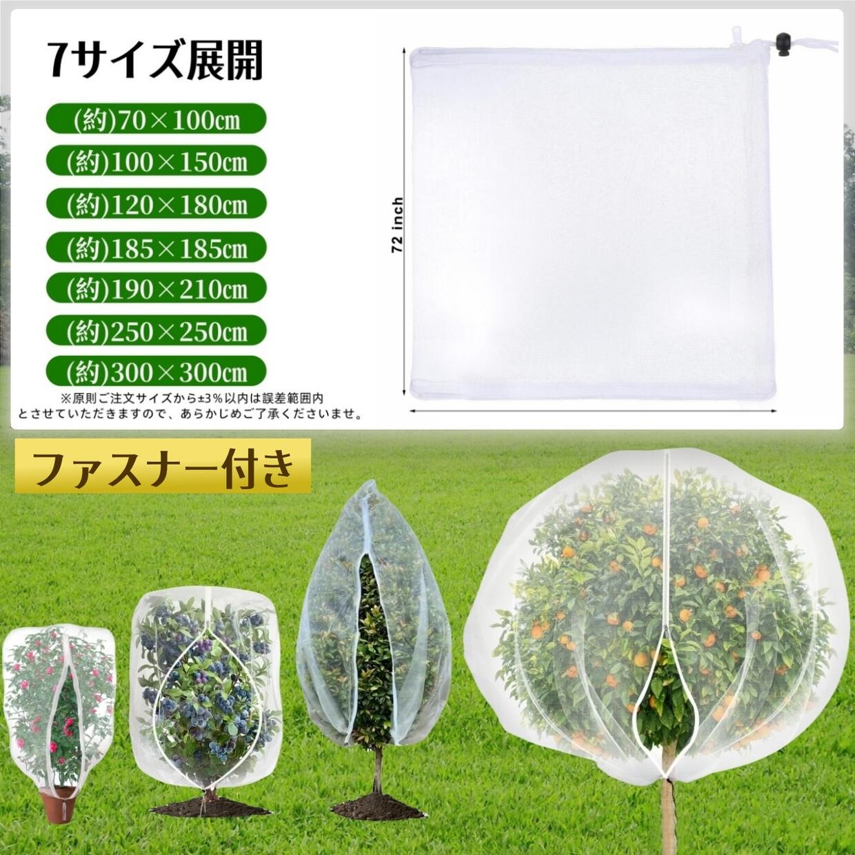 防虫ネット ファスナー付き 巾着式 植 70×100cm 100×150 120×180cm 250×250cm 300×300cm 2枚入り 4枚入り