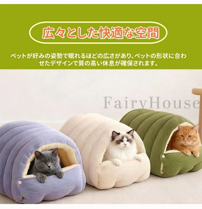 ペットハウス ペットベッド ドーム型 猫用品 ベッド マット 寝具 ベッド 通販 ベージュ グリーン パープル M:約45*30*19cm L:約57*37*28cm