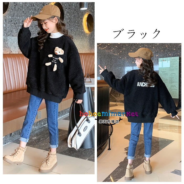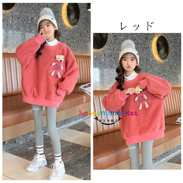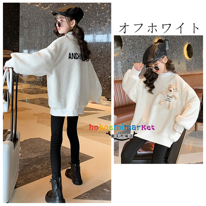韓国子供服 冬服 可愛い 暖かい パー キッズ トップス パーカー 新作 ブラック オフホワイト レッド 110 120 130 140 150 160 170