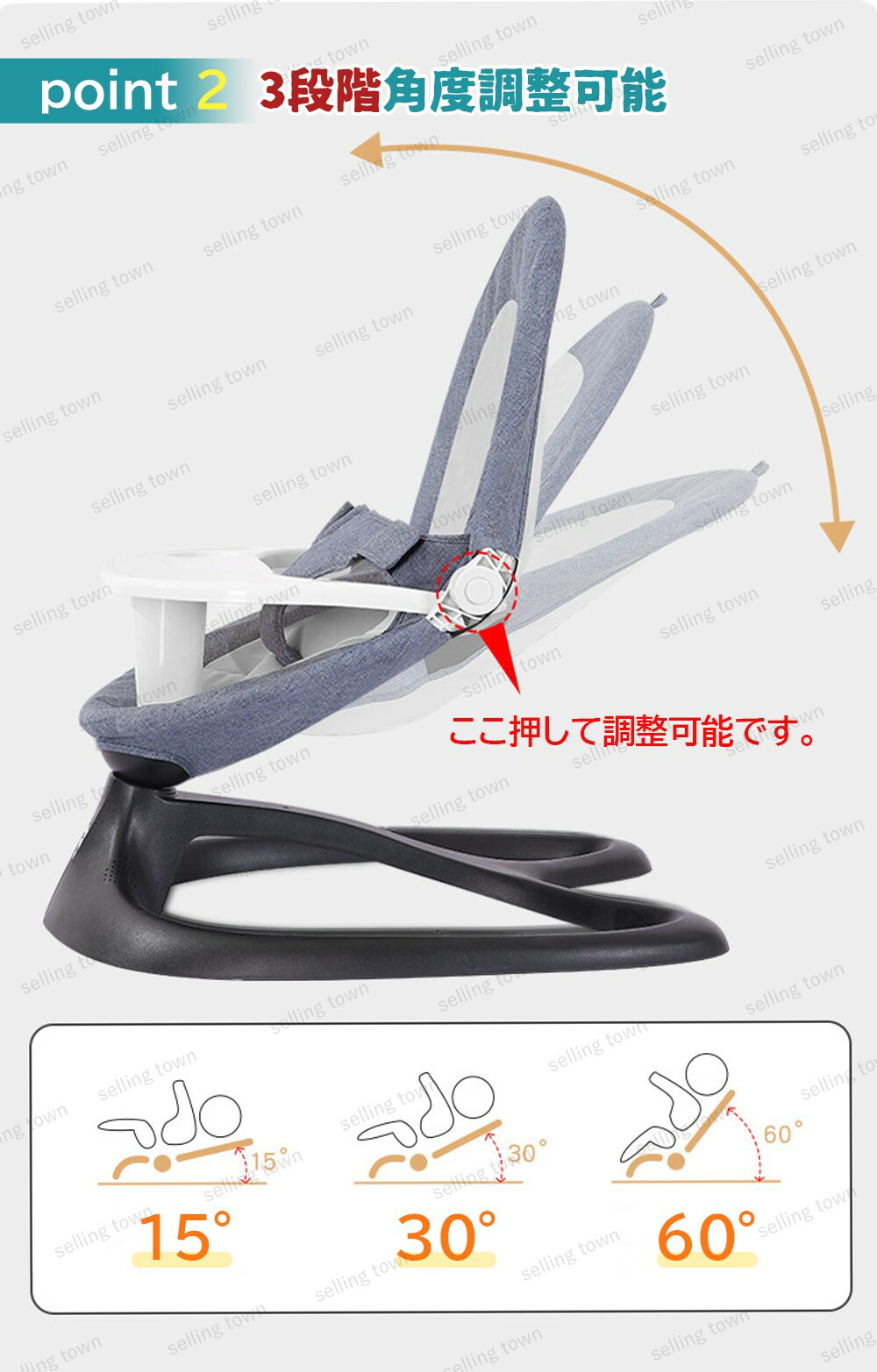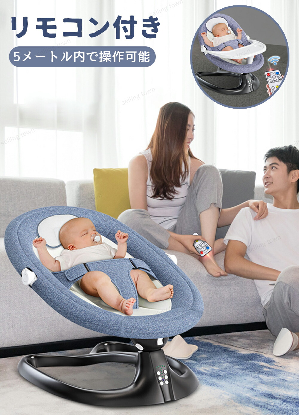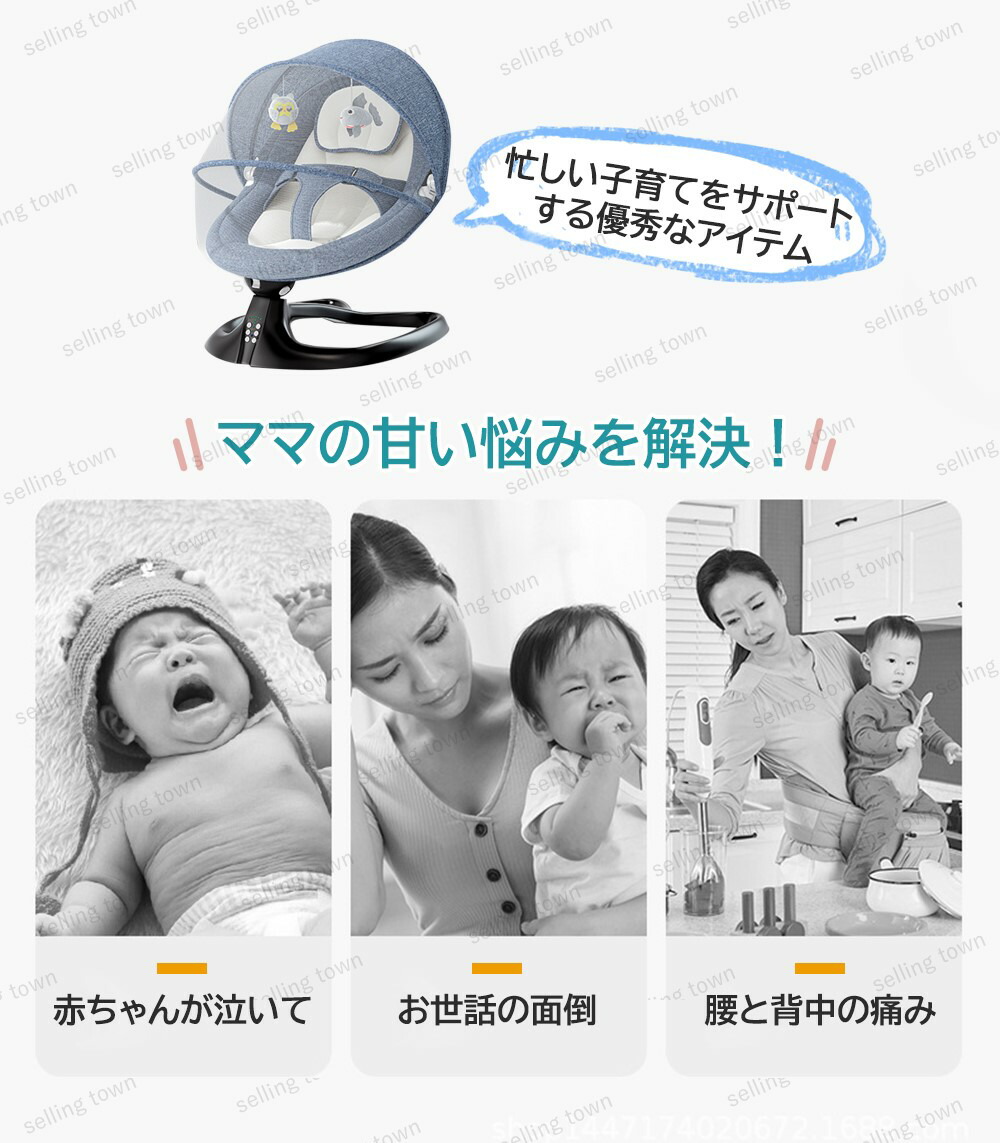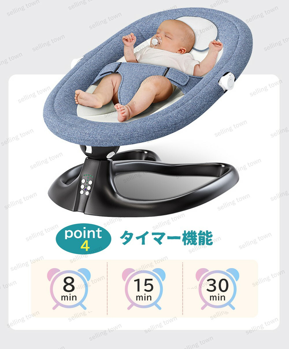 ベビーバウンサー 電動 ベビーゆりかご グレー ブルー ピンク