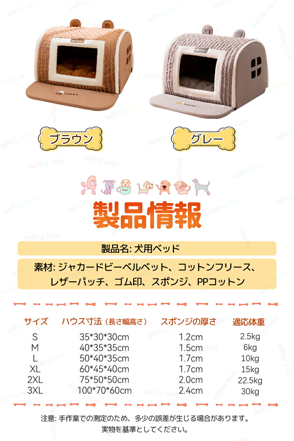 ペットハウス ドーム型 犬 猫 ベッド ペット ペットグッズ 大人気! S:35*30*30cm M:40*35*35cm L:50*40*35cm XL:60*45*40cm 2XL:75*50*50cm 3XL:100*70*60cm グレー ブラウン