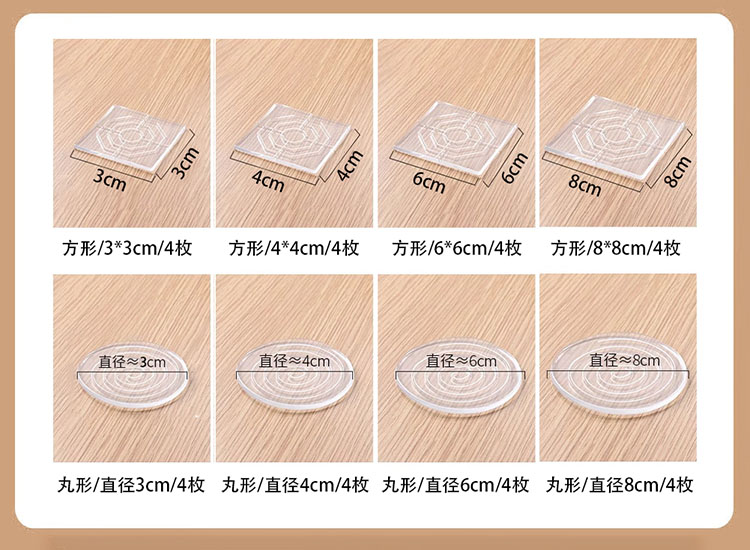傷防止パッド 家具保護パッド 4枚入り 丸形/直径3cm/4枚 丸形/直径4cm/4枚 丸形/直径6cm/4枚 丸形/直径8cm/4枚 方形/3*3cm/4枚 方形/4*4cm/4枚 方形/6*6cm/4枚 方形/8*8cm/4枚