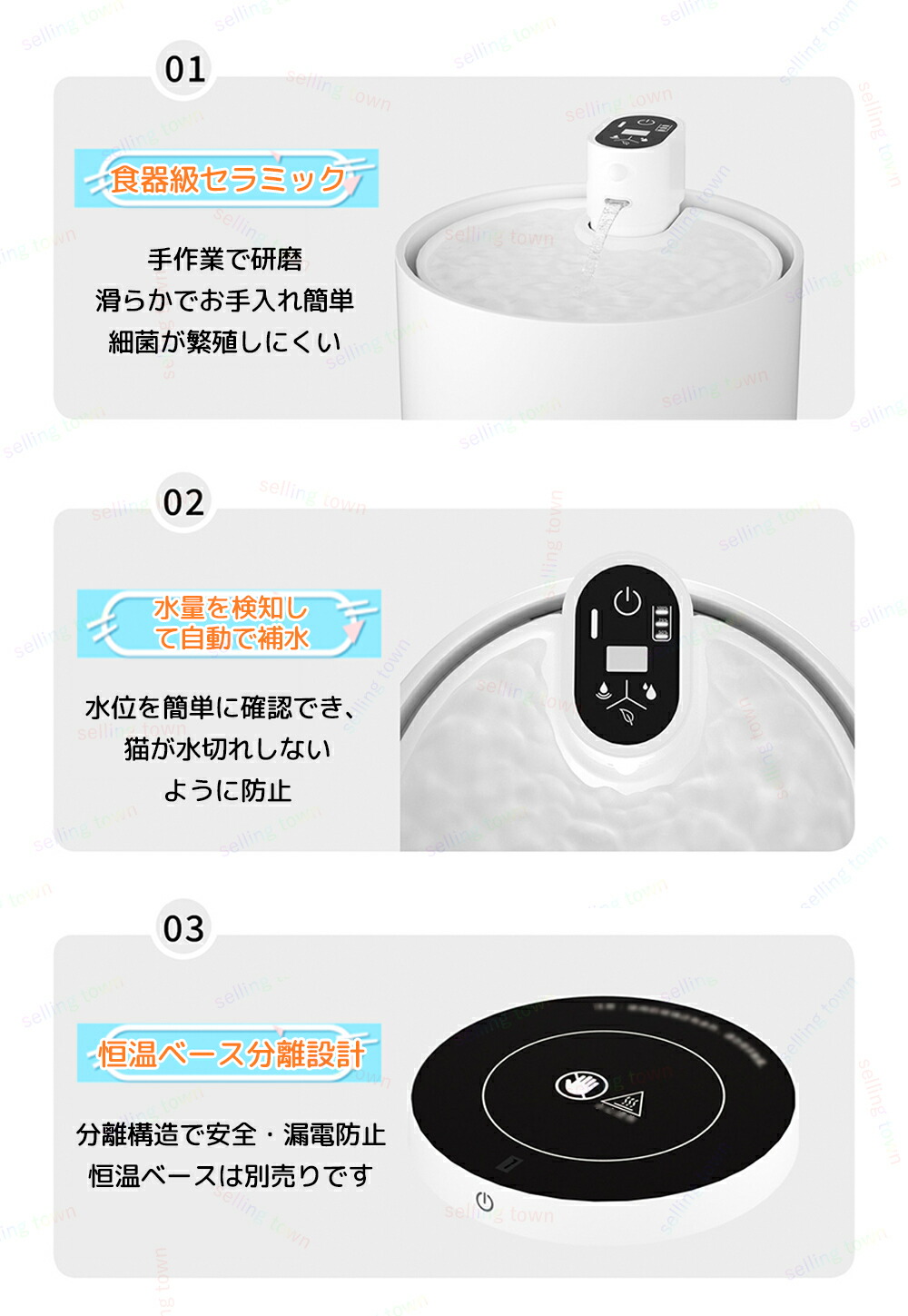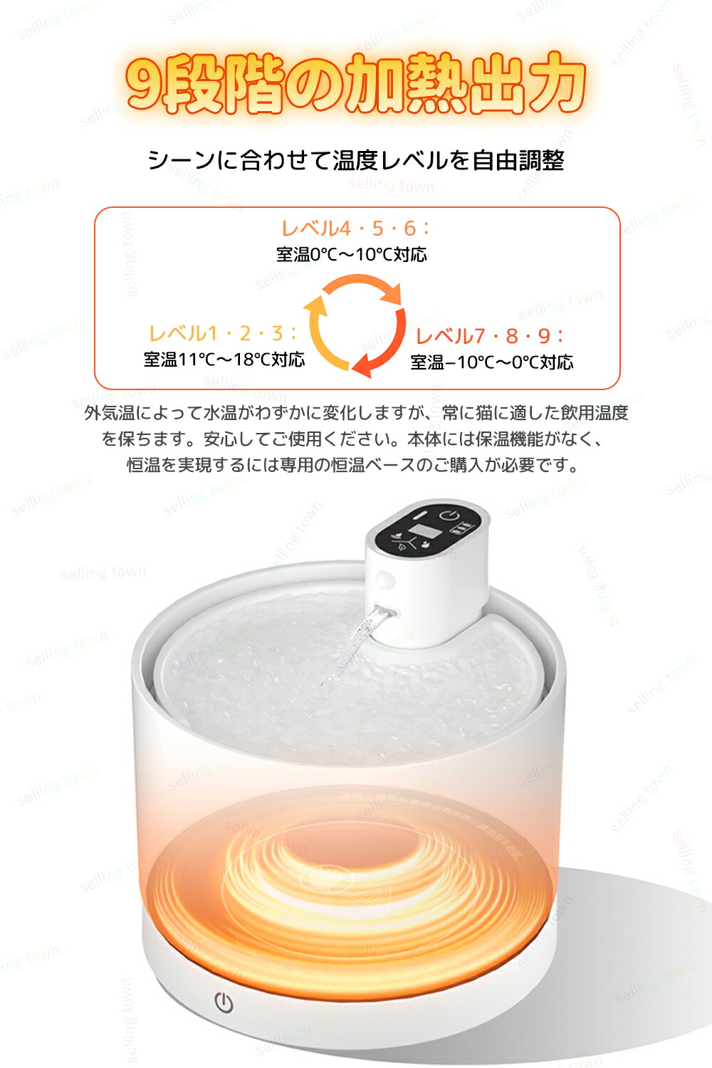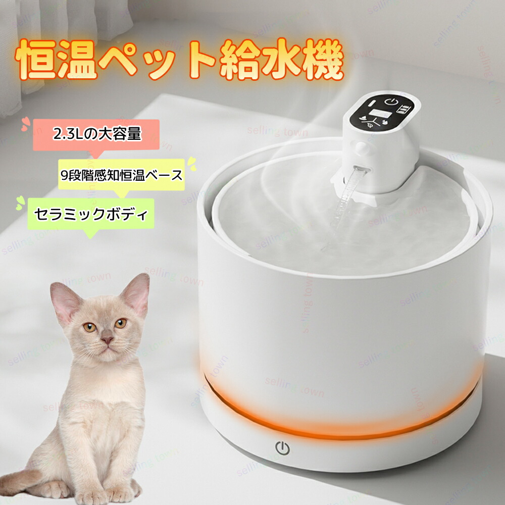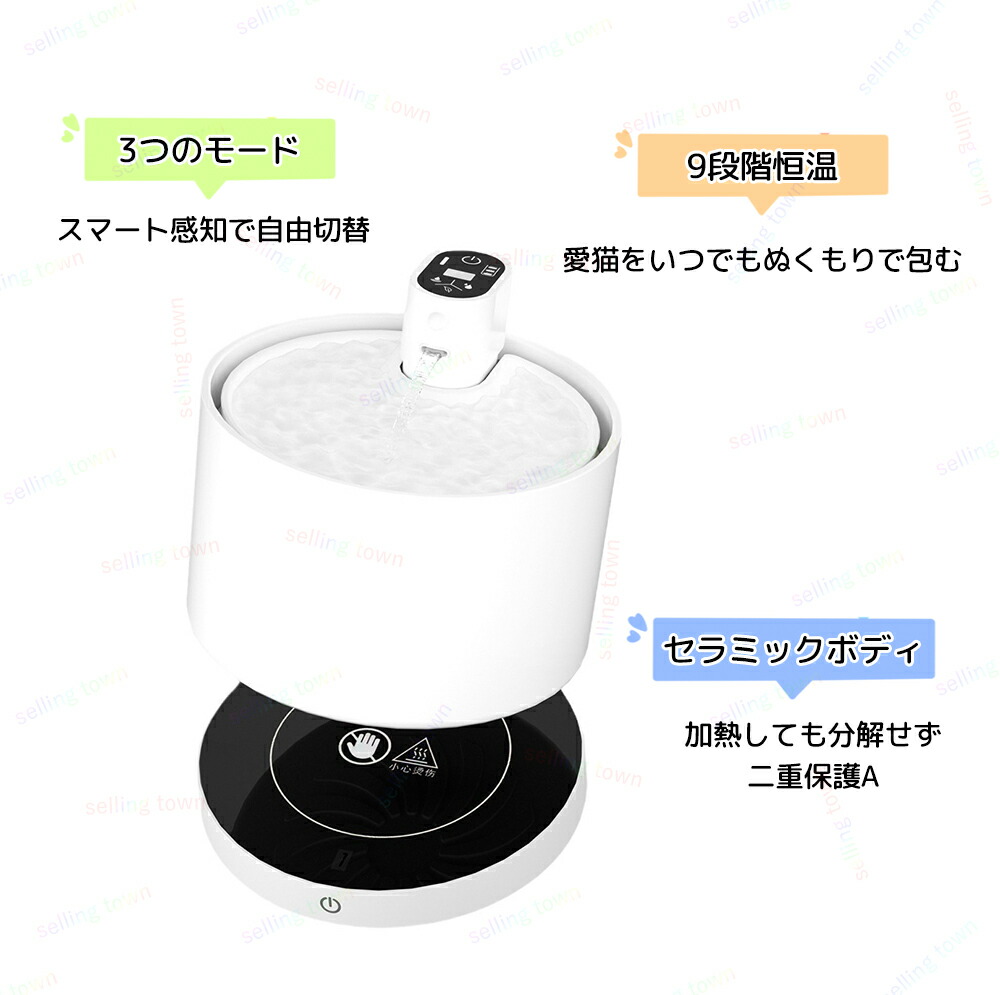 猫 給水器 コードレス充電式 加熱ペッ ホワイト ピンク ブラック 加熱ベース付き 加熱ベース無し