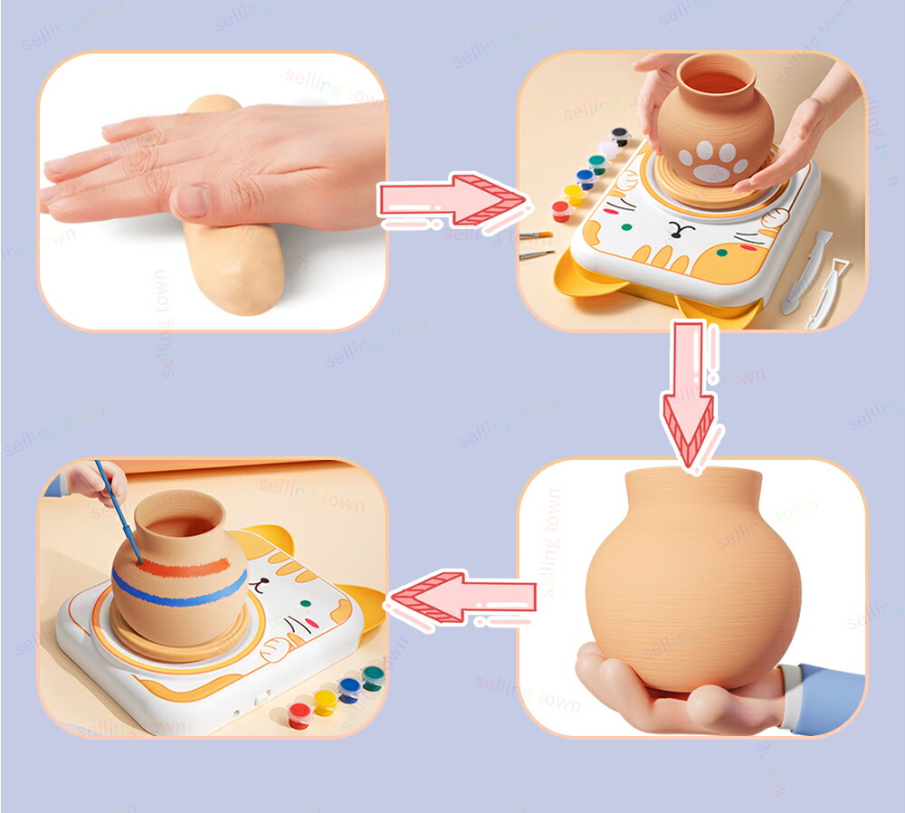 ミニ陶芸ろくろ 電動ろくろ DIY作業 イエロー ピンク