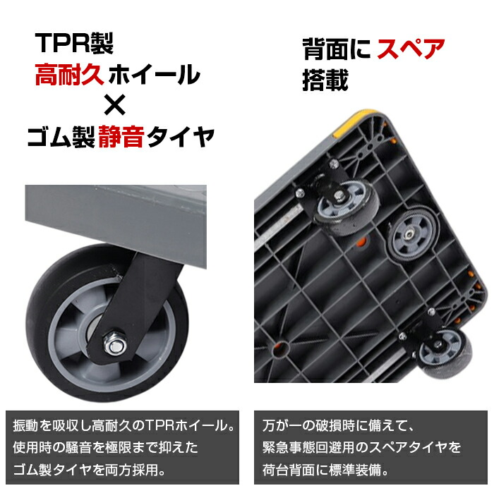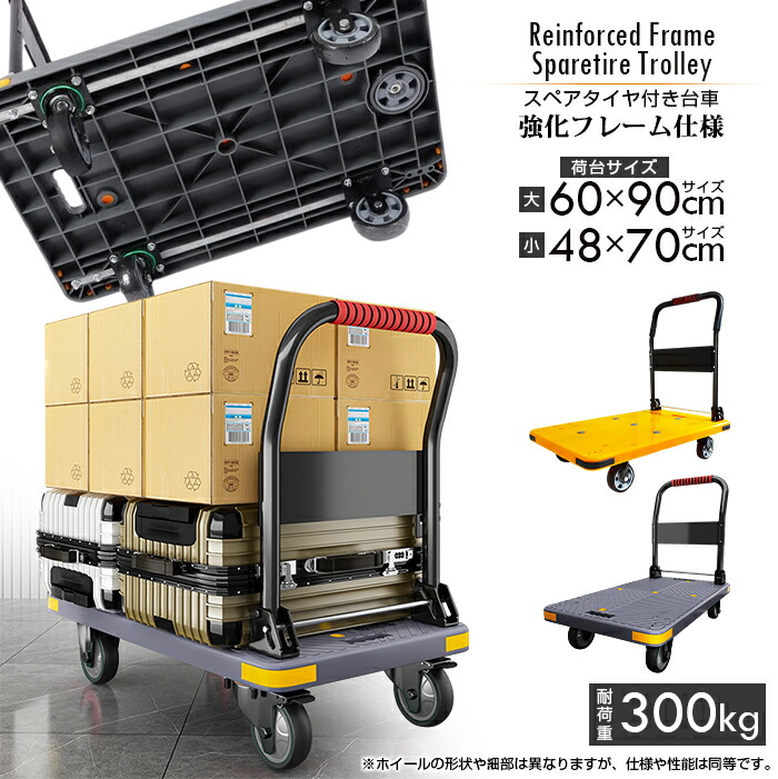 プロ仕様 積載荷重300kg スペアタ グレー イエロー (大) 60×90cm荷台サイズ (小) 48×70cm荷台サイズ