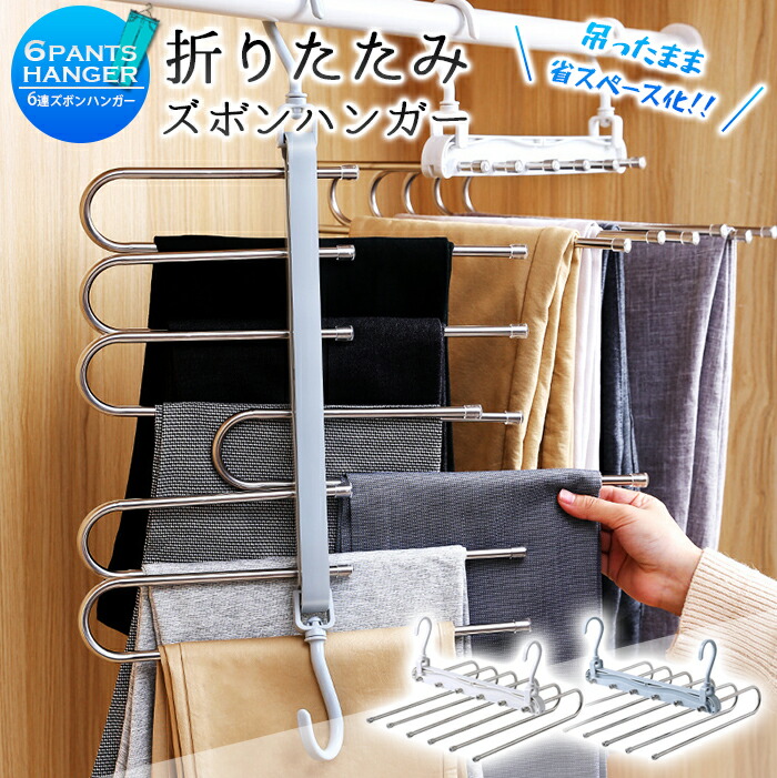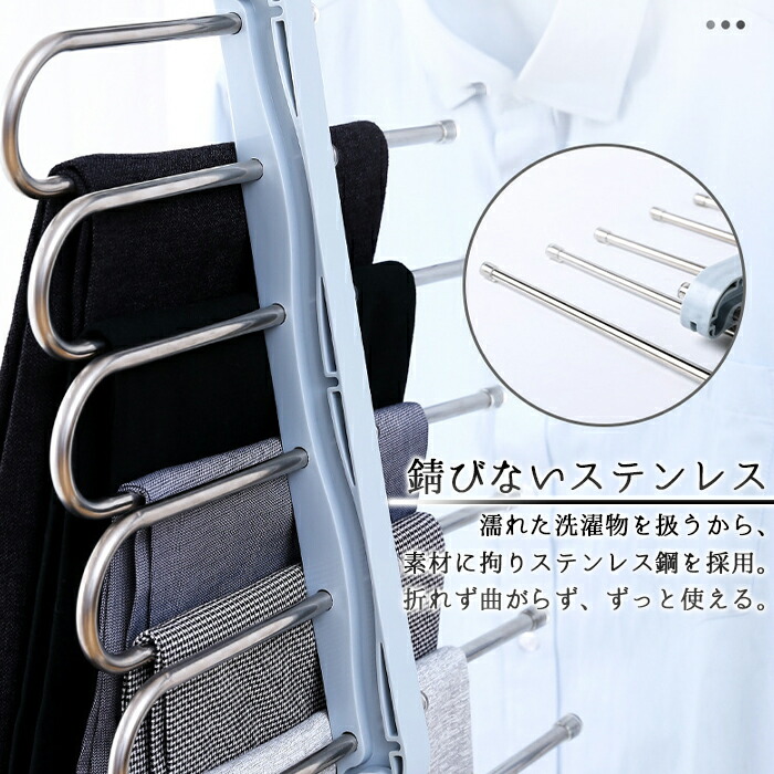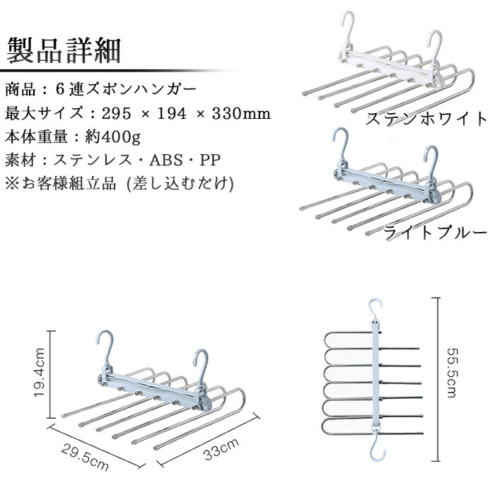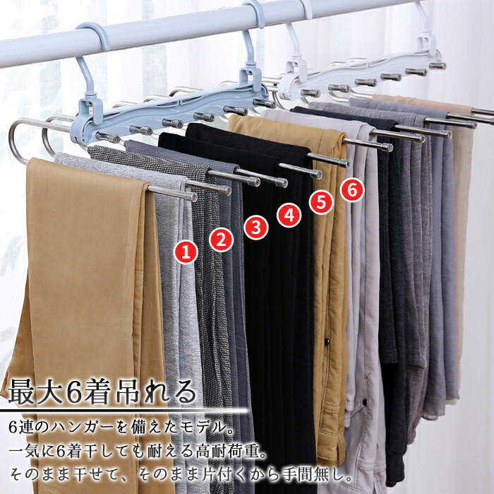 6連ズボンハンガー 日光に強い 太陽に ステンホワイト ライトブルー