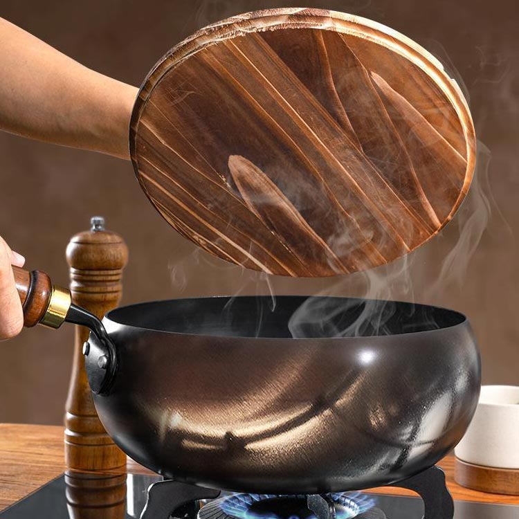 ガス代節約 フライパン 軽量設計 鉄フ 鍋+木製蓋 鍋+ガラス蓋