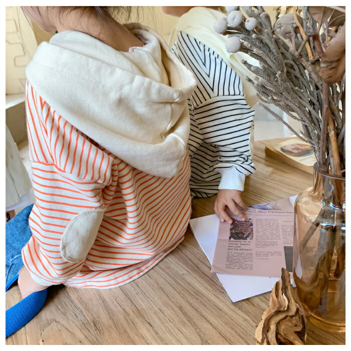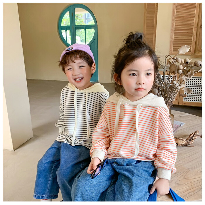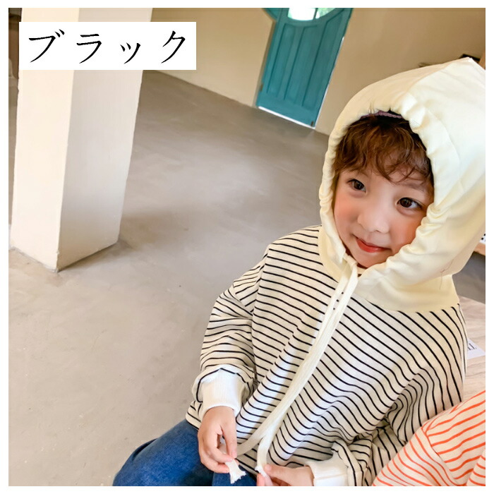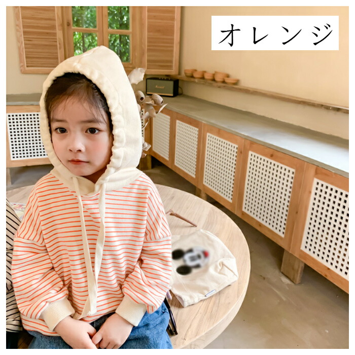 子供服 ストライプ柄 パーカー 80 キッズ ベビー マタニティ 早い者勝ち オレンジ ブラック 80 90 100 110 120 130