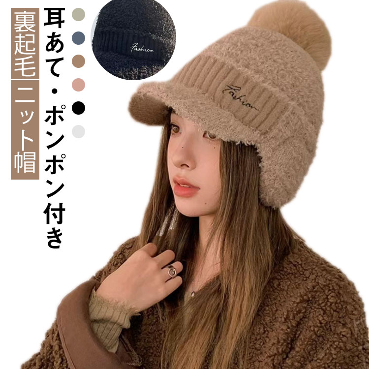 耳あて レディース あったか ニット帽 帽子 レディース帽子 ニット帽 通販 ブラック ベージュ ホワイト グレー ピンク ライトブラウン