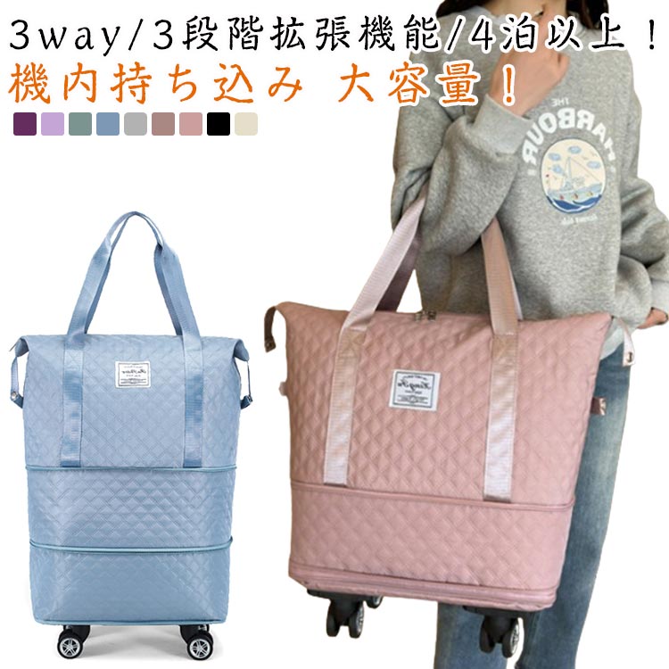ボストンバッグ 拡張 キャスター付き バッグ スーツケース キャリーバッグ 人気 ブラック グレー ベージュ ピンク スモーキーピンク グリーン ブルー パープル ダークパープル