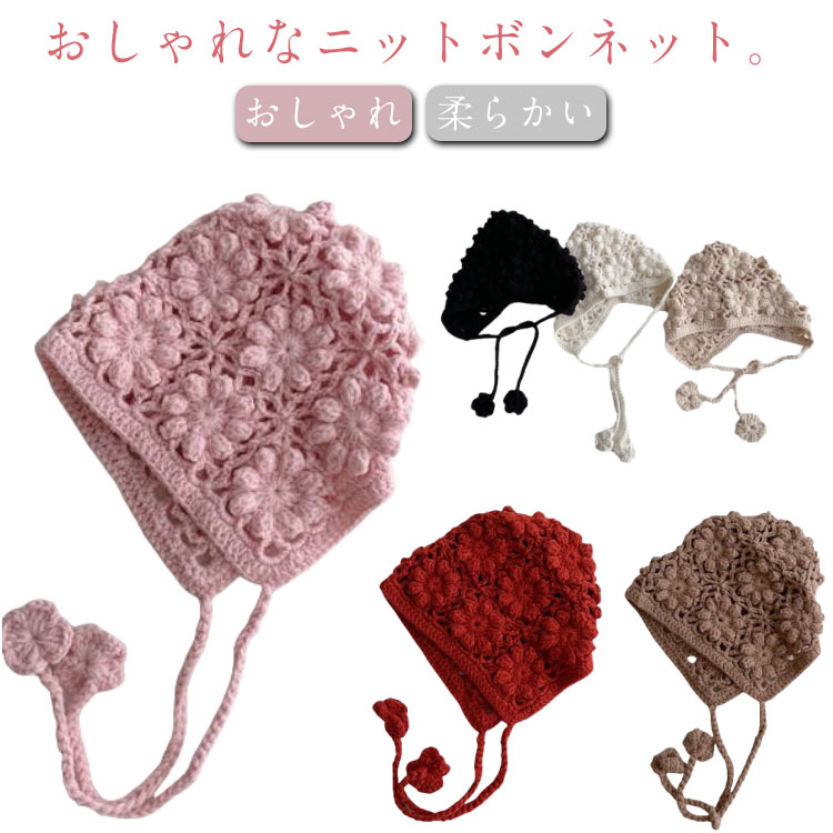 ボンネット 柔らかい 透け編み 帽子 キッズ ベビー マタニティ 早い者勝ち ダークベージュ ベージュ ホワイト ピンク ワインレッド ブラック