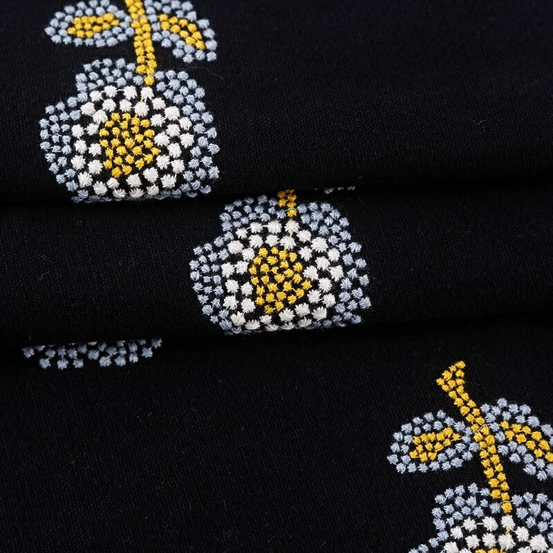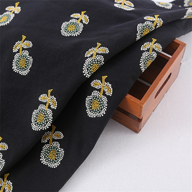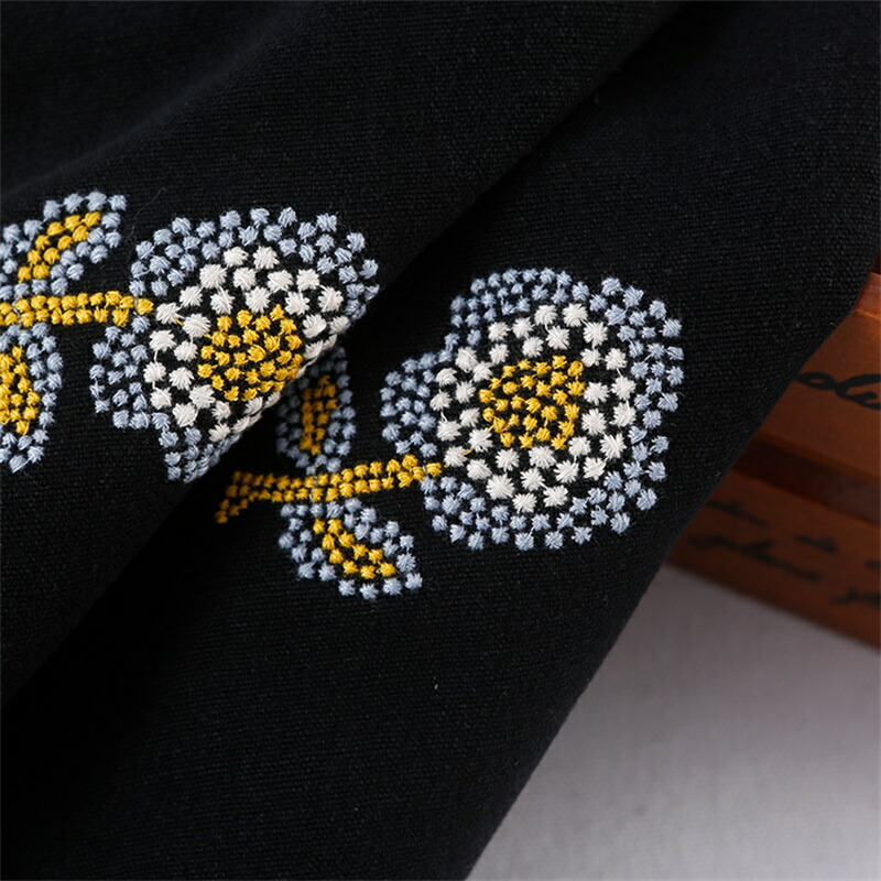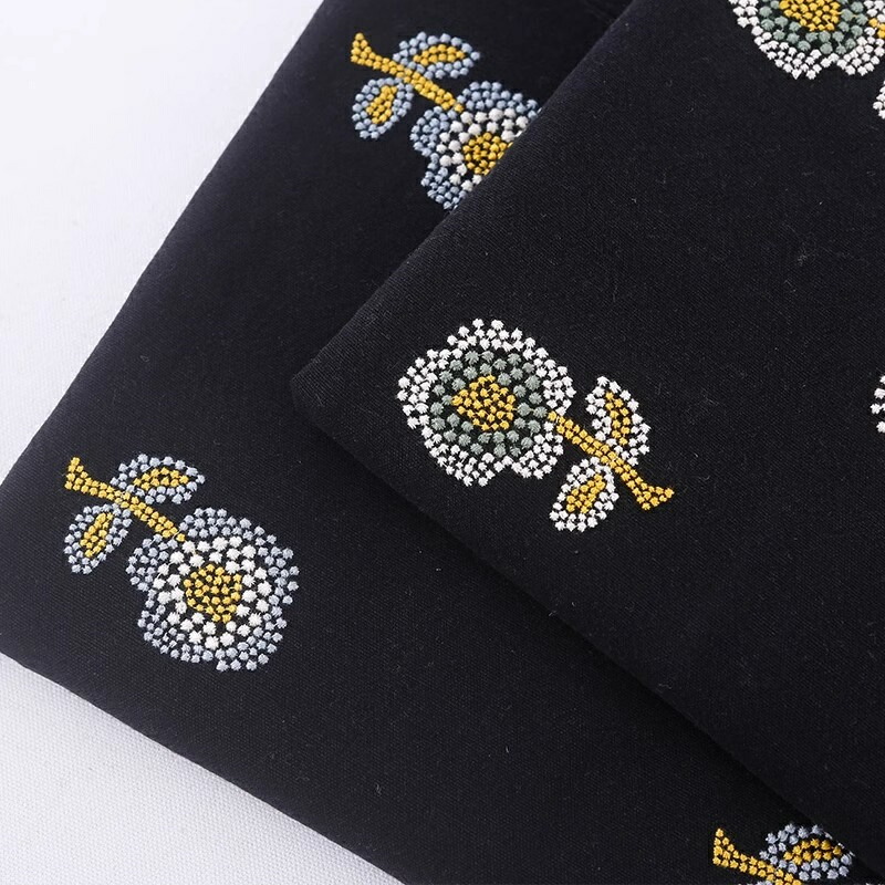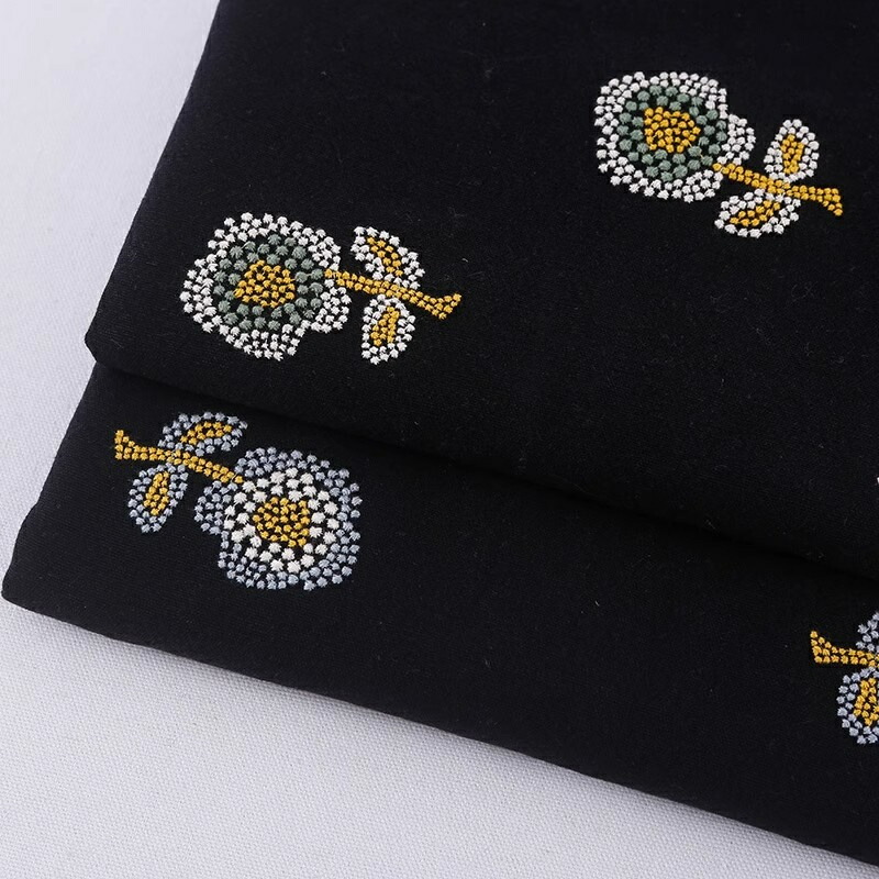 120cm幅 90cm単位 生地 布 布地 ぬの きじ 刺繍生地 綿麻生地 花柄 黒 ハンドメイド 手作り 手造り 手芸 材料 ソーイング 服地 DIY