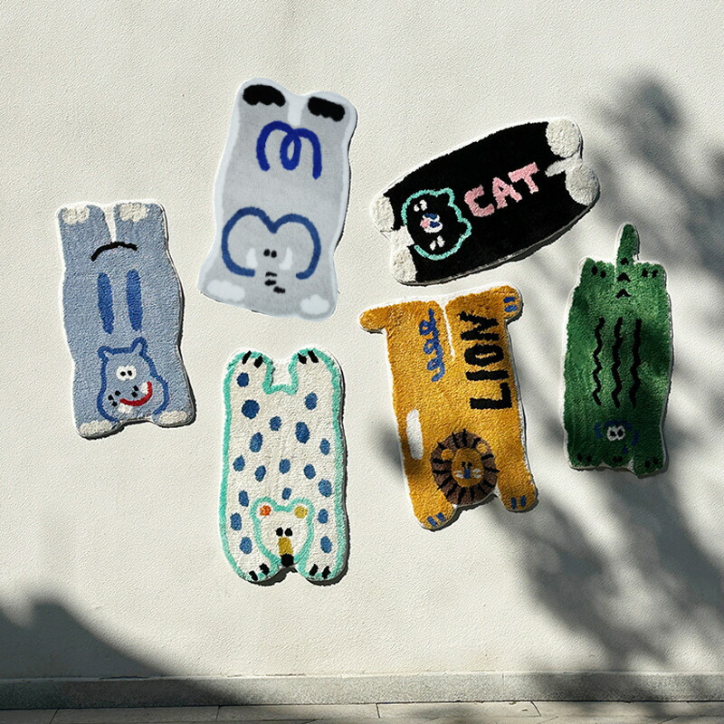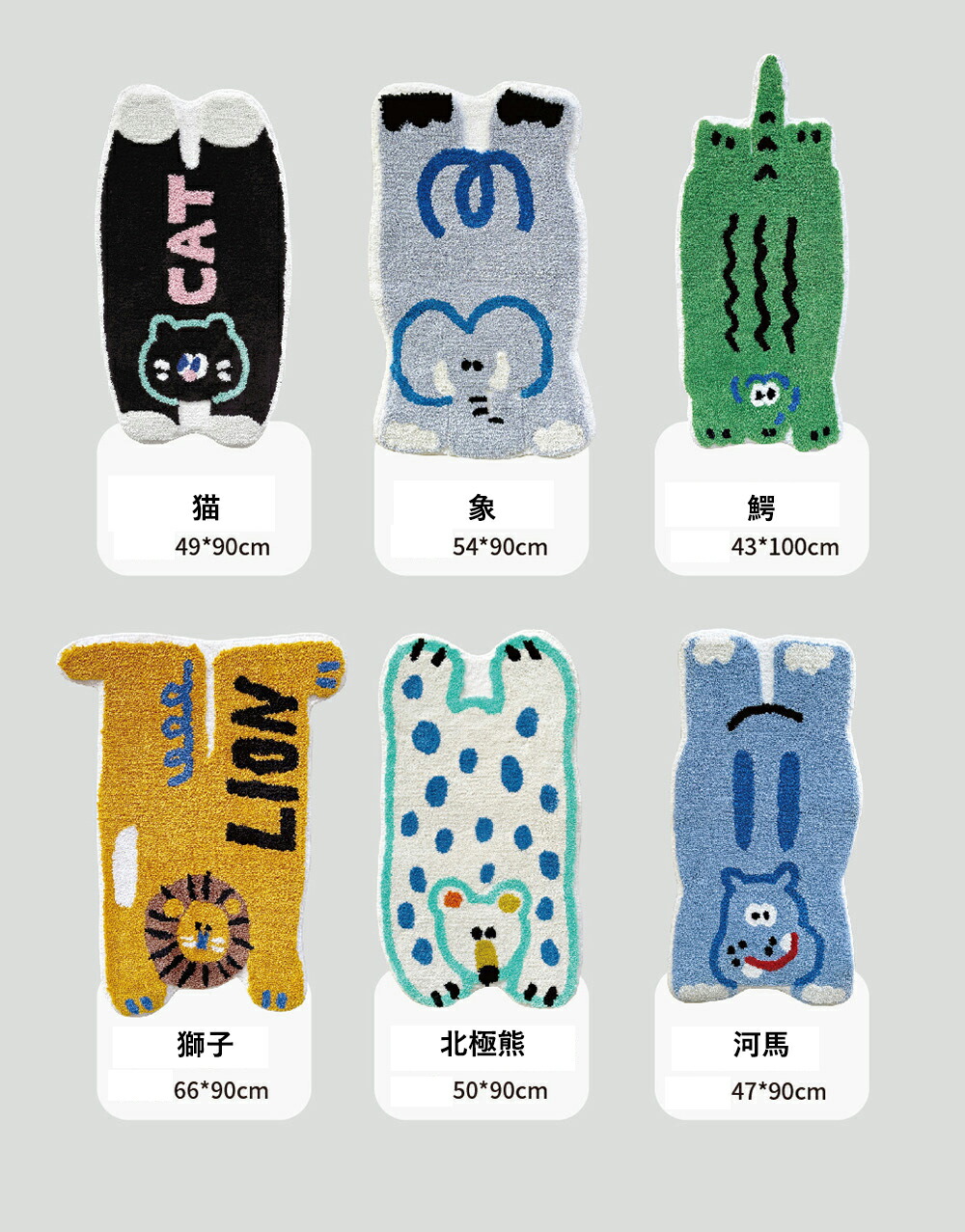 カーペット フロックカーペット 可愛い 猫49x90cm 象54x90cm 鰐43x100cm 獅子66x90cm 北極熊50x90cm 河馬47x90cm
