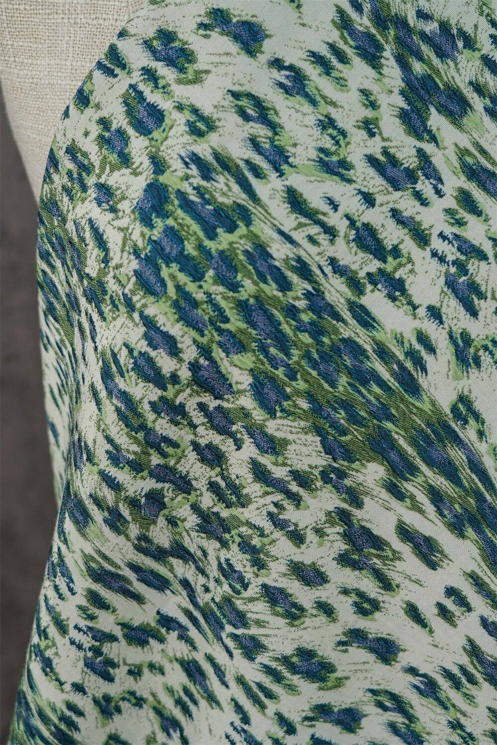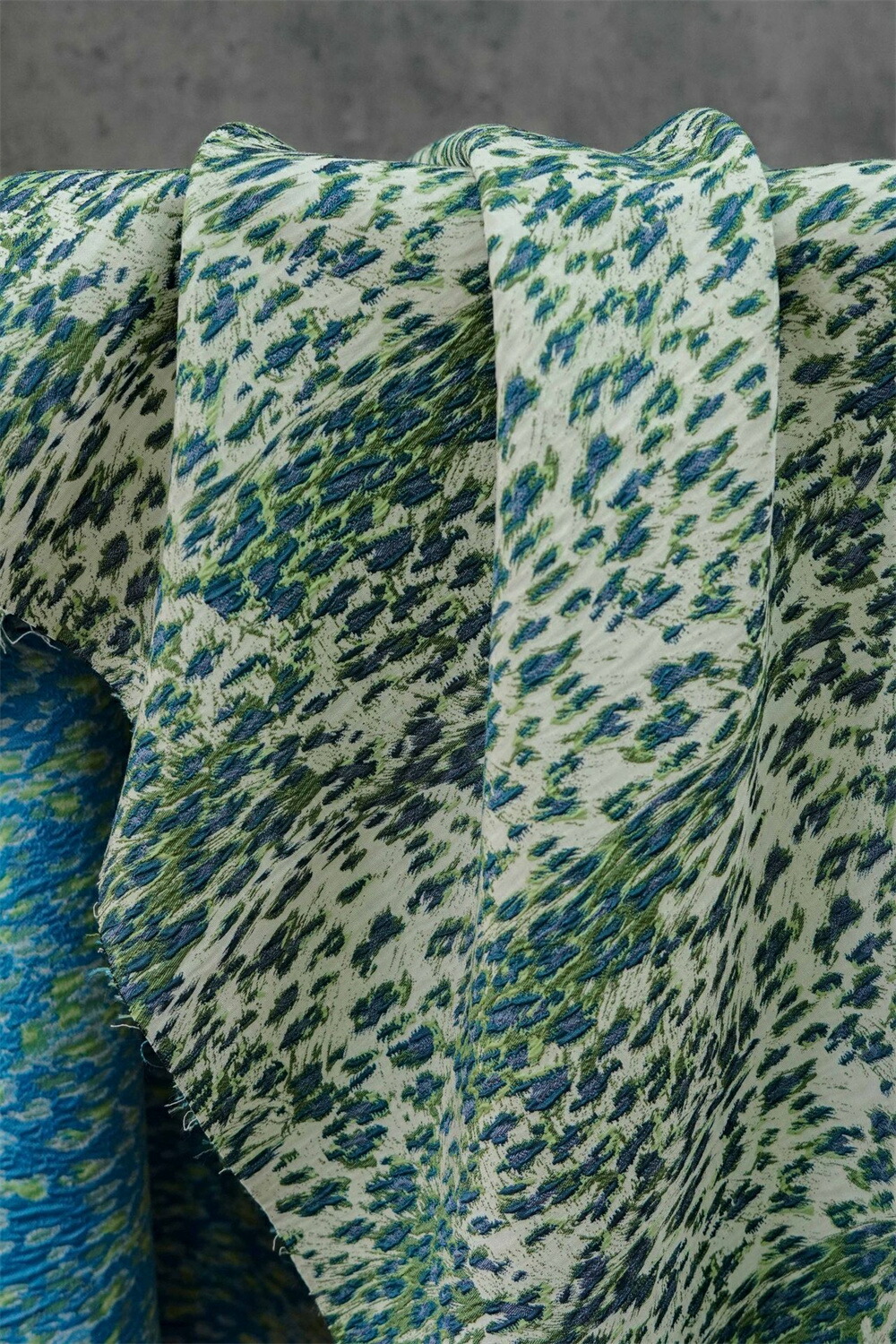 135cm幅 90cm単位 ジャカード生地 エンボス生地 浮き彫り生地 立体感 生地 布 布地 色織り生地 きじ ぬの 手作り生地 裁縫 DIY用生地 手芸用 ヒョウ柄 豹柄 グリー ハンドメイド向け