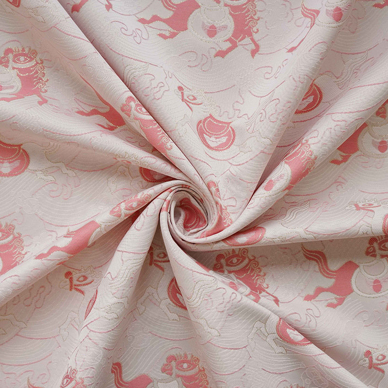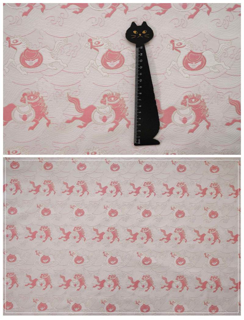 145cm幅 90cm単位 生地 布 布地 きじ ジャカード生地 色織り コイン柄 波柄 ピンク 馬柄