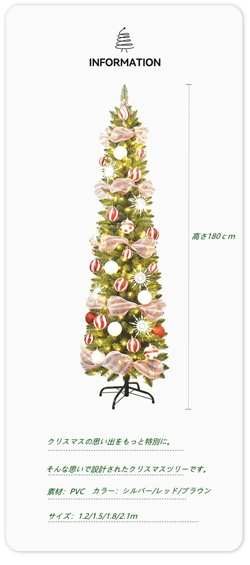 クリスマスツリー リアル クリスマス ヌードツリー ツリー+LEDライト シルバー レッド ブラウン 1.2m 1.5m 1.8m 2.1m