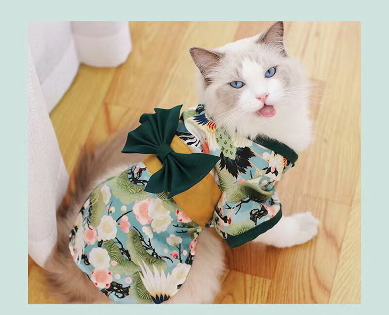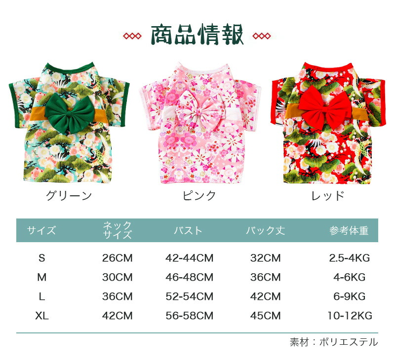 SNS映え ペット用浴衣 犬 猫 浴衣 レッド グリーン ピンク S M L XL