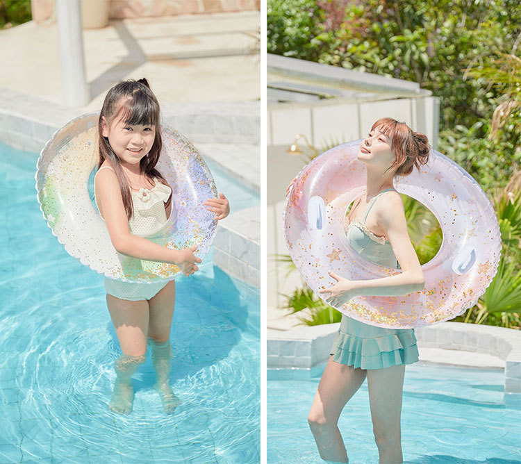 大人 キッズ 浮き輪 フロート ボート マット アウトドア ビーチグッズ SNSで話題 海水浴 プール かわいい インスタ映え おもしろ 波乗り キラキラ 水遊び スパンコール レインボー 透 夏休み