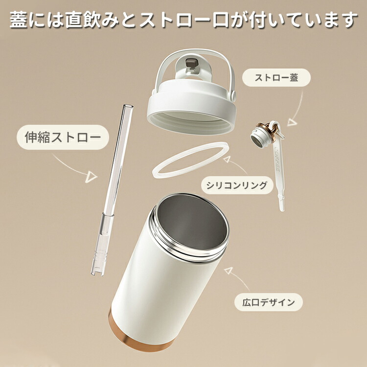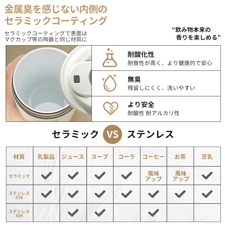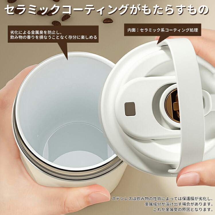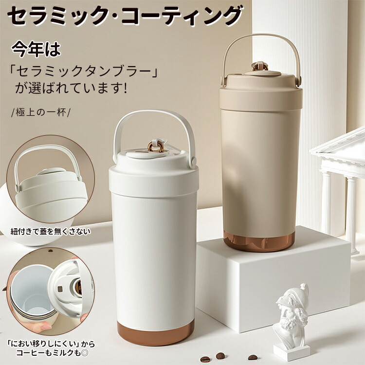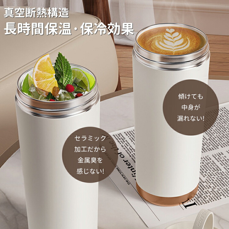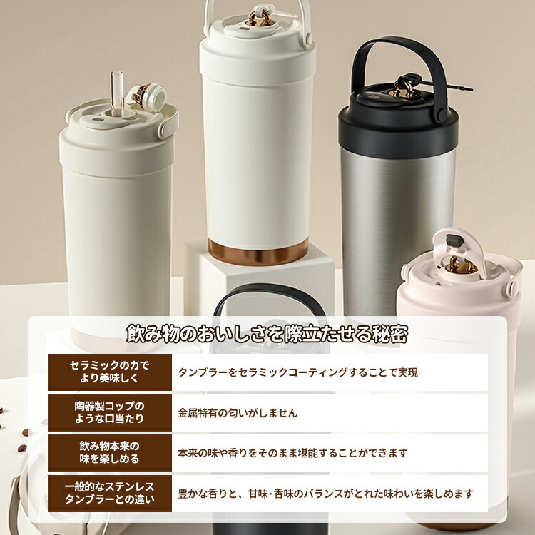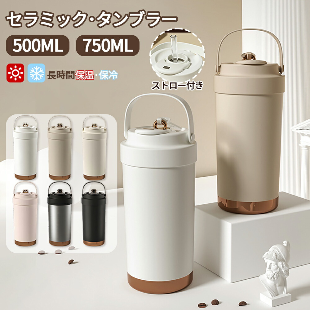 セラミック タンブラー 水筒 マグボトル ストロー付き コーヒー 持ち運び 保温 保冷 ストロー 真空断熱 蓋付き セラミックコーティング こぼれない 漏れない 500ml 750ml 3WAY 直飲み ストロー付きタンブラー 保温保冷 プレゼント ギフト