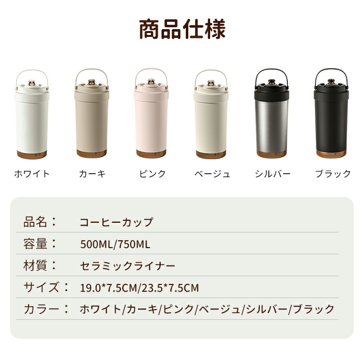 タンブラー セラミックタンブラー 夏用 冬用 750ML 500ML 二重構造 保温携帯コーヒーカップ おしゃれ 溢れにくい 大容量魔法瓶 保冷 耐熱 蓋付き ブラック 2Way 真空断 直接ドリップ